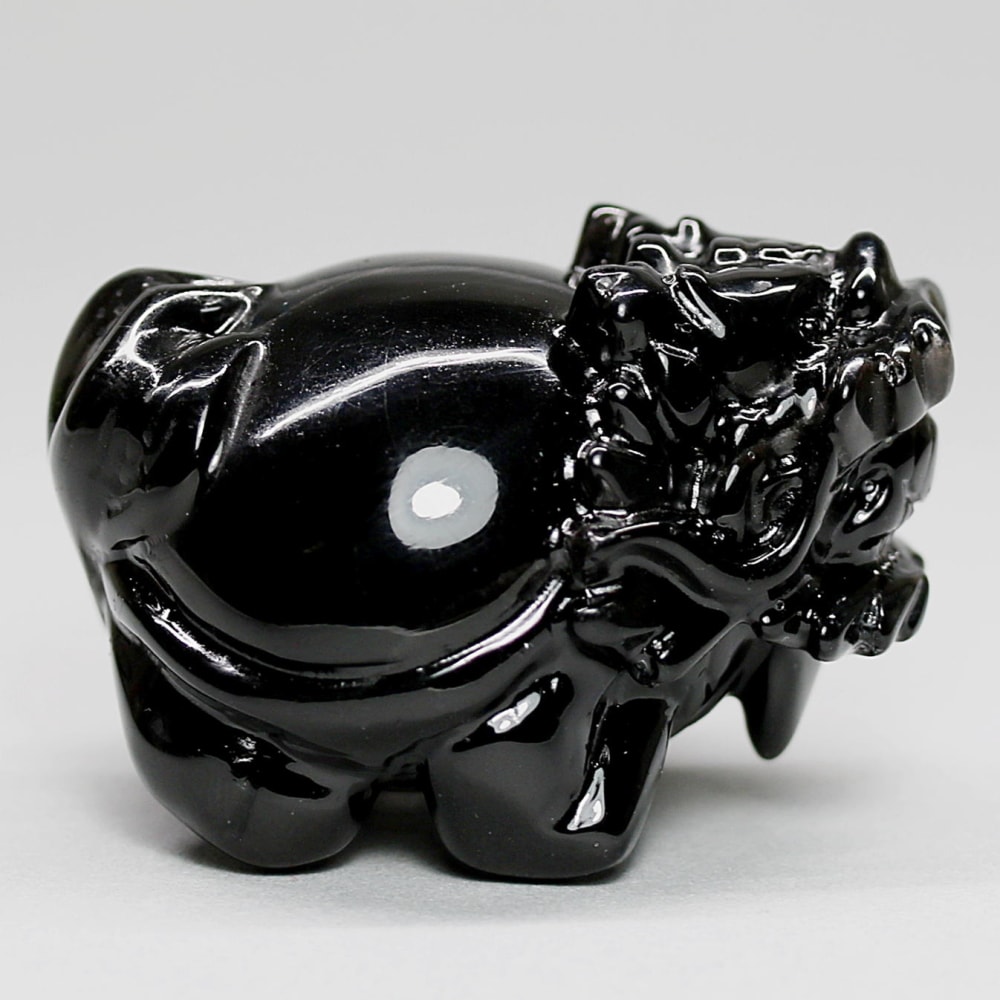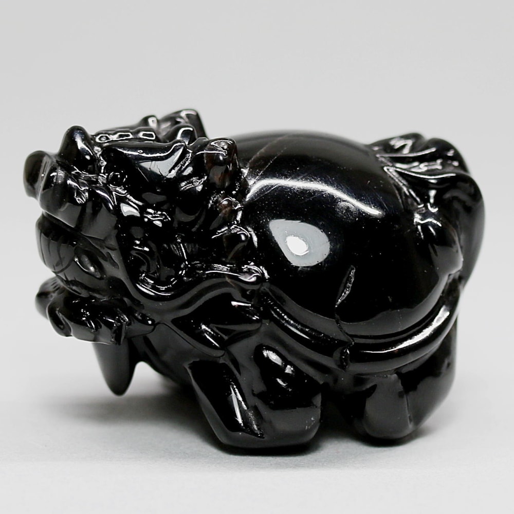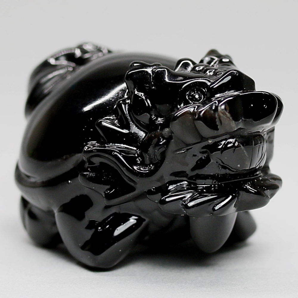 強力な邪気払いや魔除けの石として常に注目される山東省産モリオン(黒水晶)を「龍亀/ロングイ」に彫刻した置物でございます。