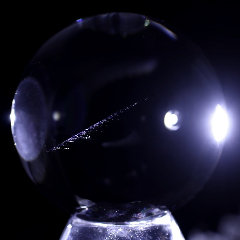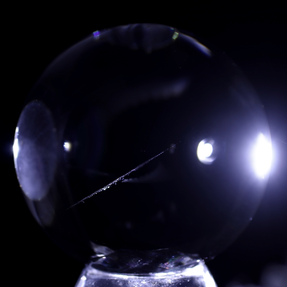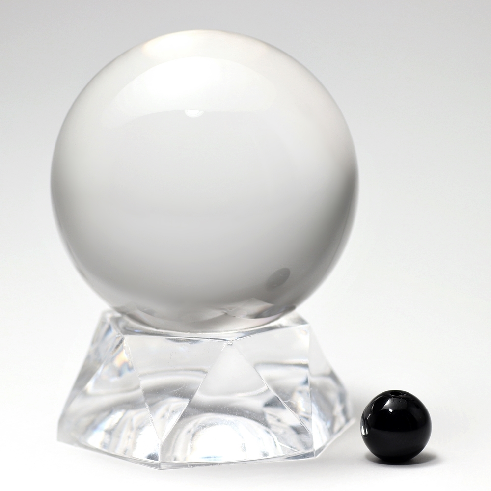 ご覧のお品は、直径44.68mm無垢水晶玉です。厳しい再検査により傷が2か所確認されましたので “訳あり特別価格” としてご提供いたします。