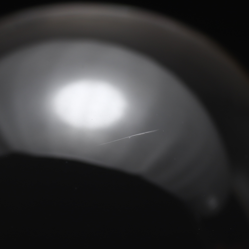 エンジェルラダーは内包物ではないため肉眼では確認できません。水晶の透明度を損なわないので、無垢水晶玉の品質基準と同等となります。