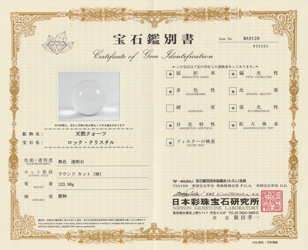 さらに、こちらの無垢水晶玉には「宝石鑑別書」を取得、専用ケースをお付けいたします。お買い求めの際には取得した鑑別書を同梱して発送いたします。