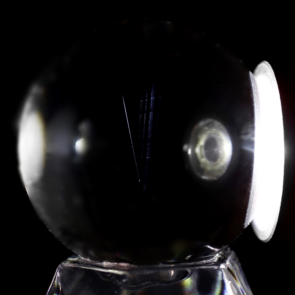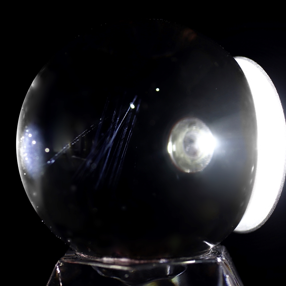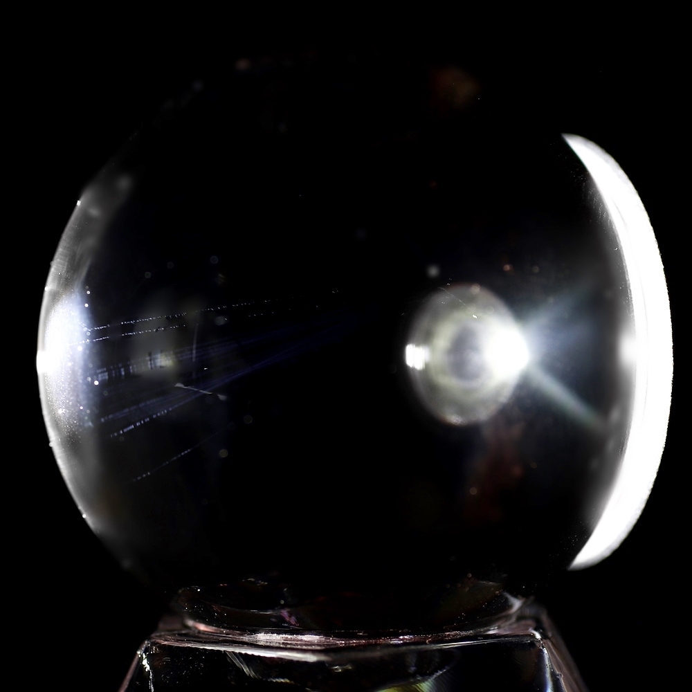 エンジェルラダーは内包物ではないため肉眼では確認できません。水晶の透明度を損なわないので、無垢水晶玉の品質基準と同等となります。