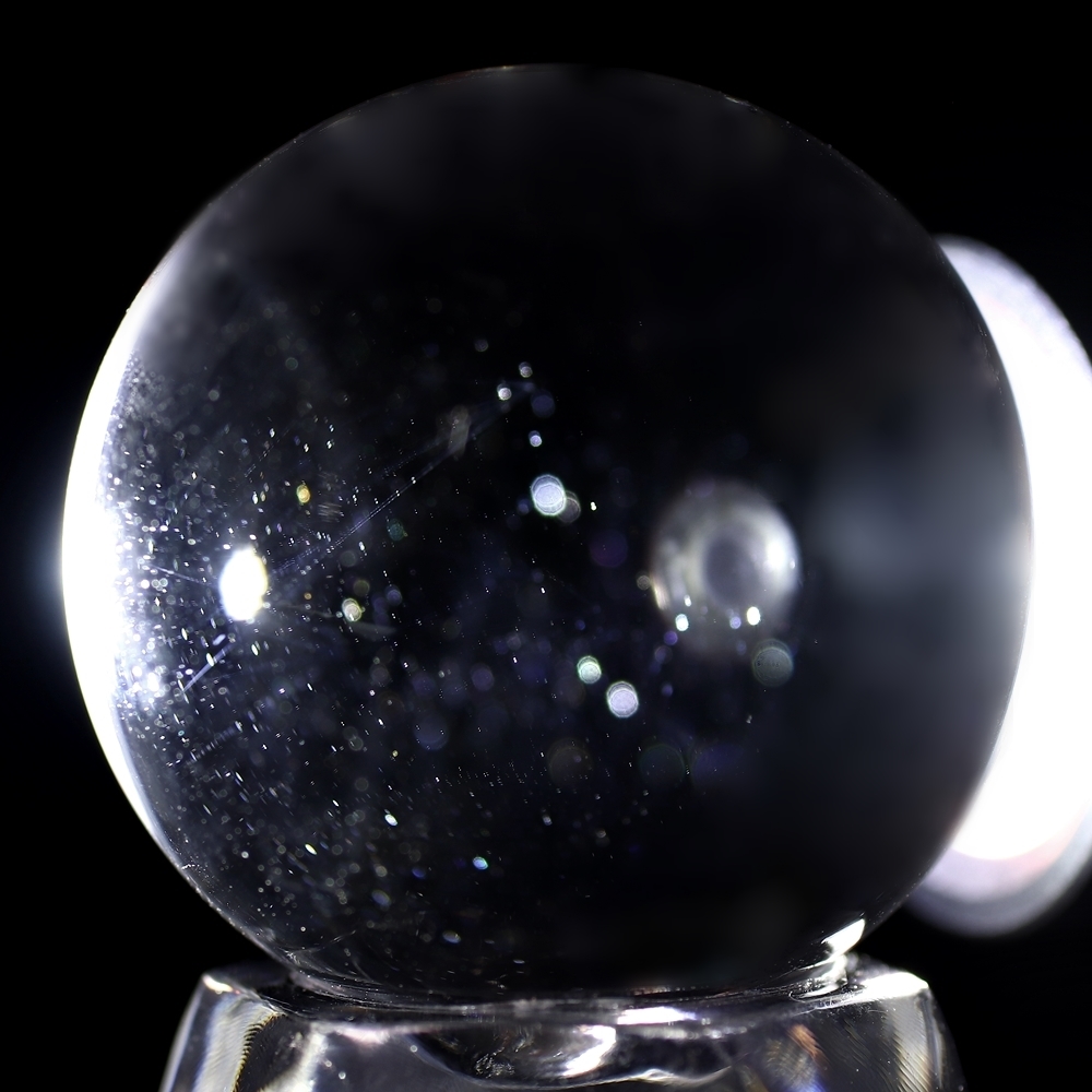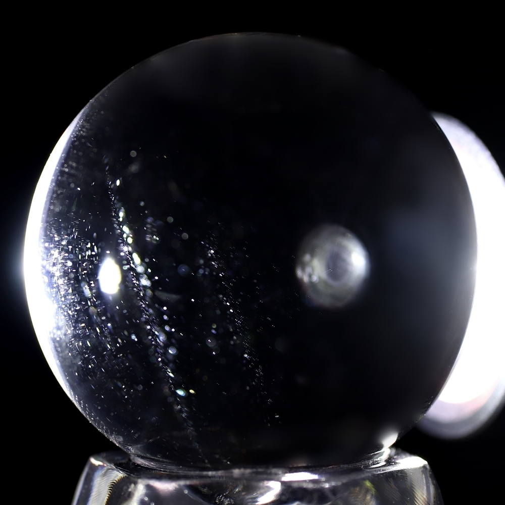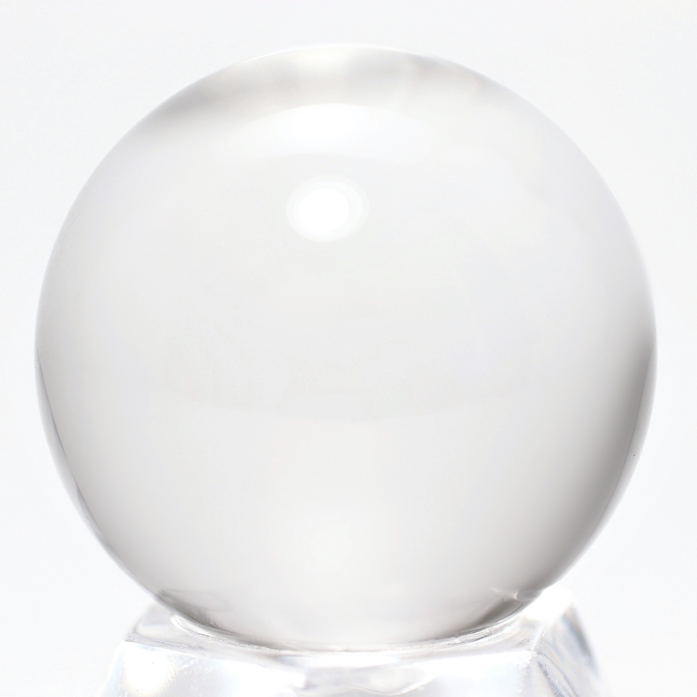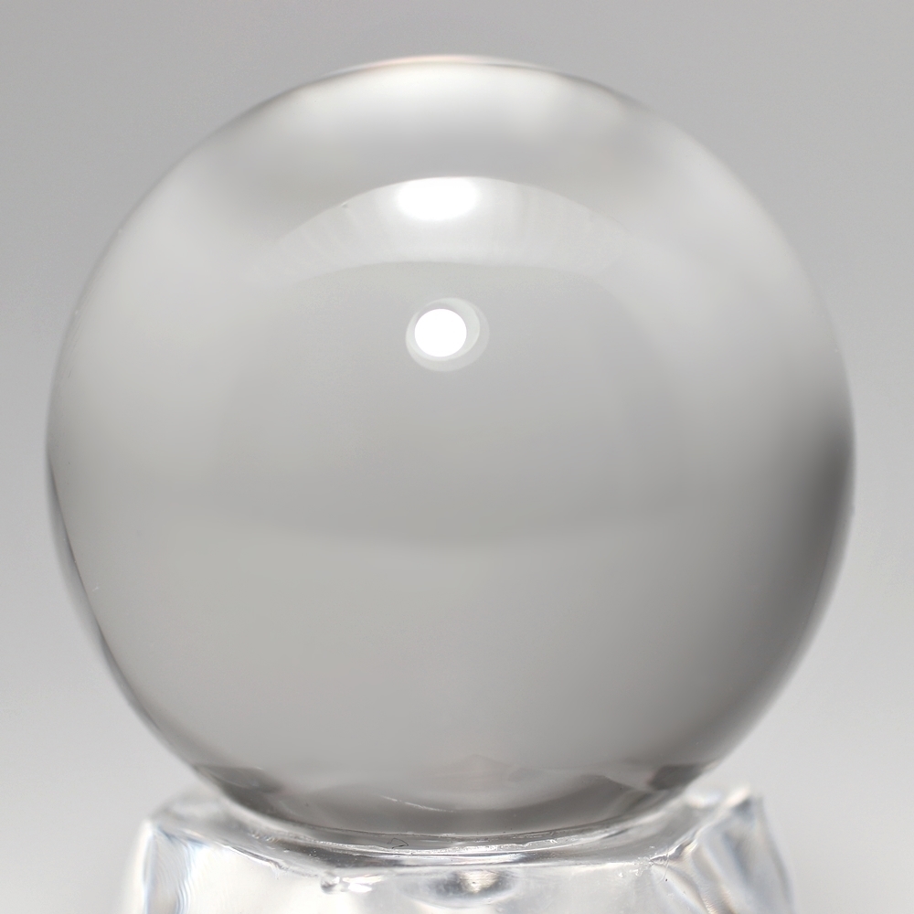 ご覧のお品は、傷、微小インクルージョン、微褐色、特有の構造が一切無い「完全無色透明」最高ランクの直径32.0mm無垢水晶玉です。
