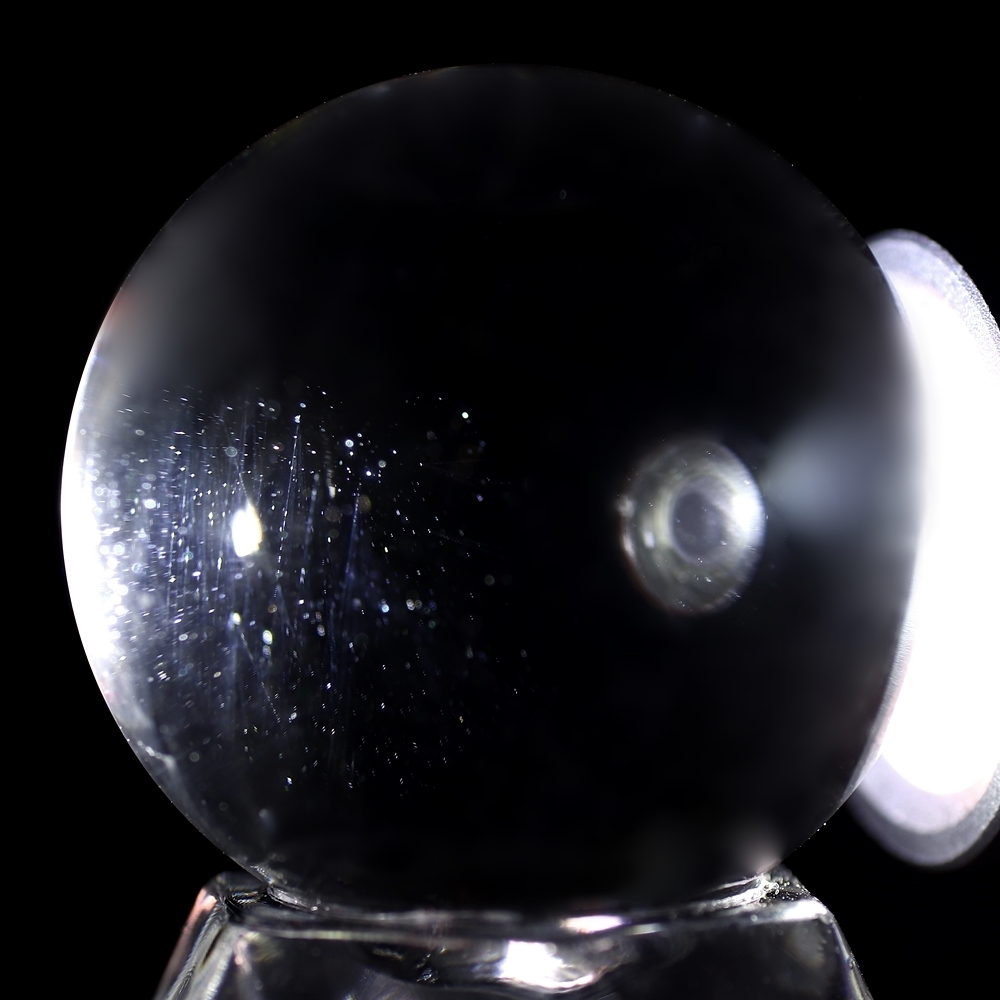エンジェルラダーは内包物ではないため肉眼では確認できません。水晶の透明度を損なわないので、無垢水晶玉の品質基準と同等となります。
