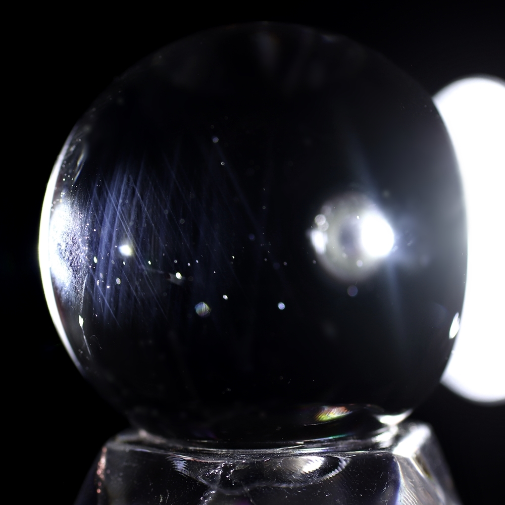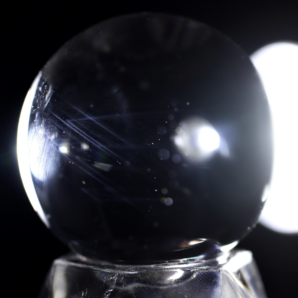 エンジェルラダーは内包物ではないため肉眼では確認できません。水晶の透明度を損なわないので、無垢水晶玉の品質基準と同等となります。