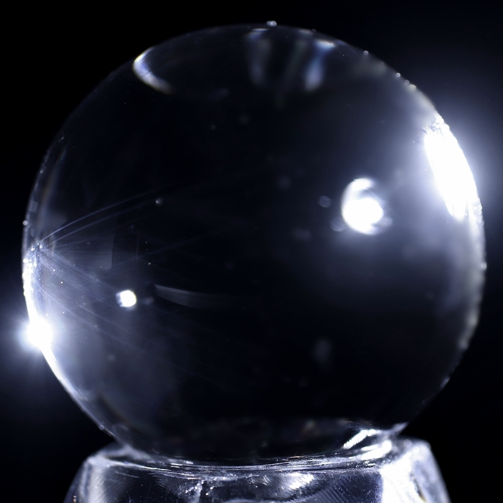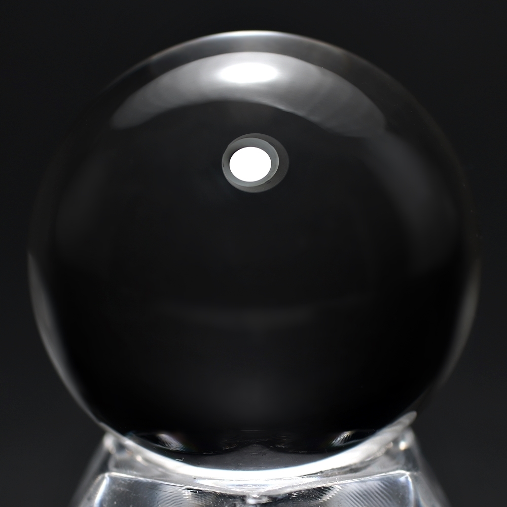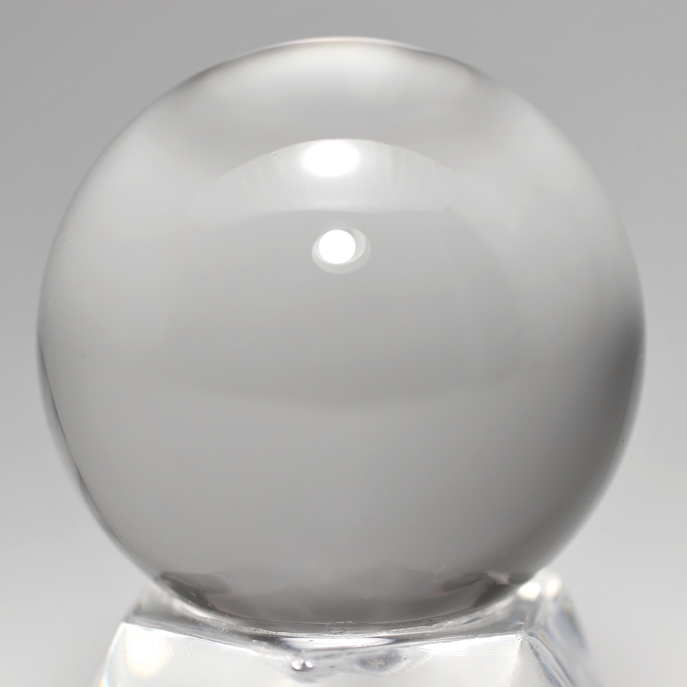 ご覧のお品は、傷、微小インクルージョン、微褐色、特有の構造が一切無い「完全無色透明」最高ランクの直径31.4mm無垢水晶玉です。