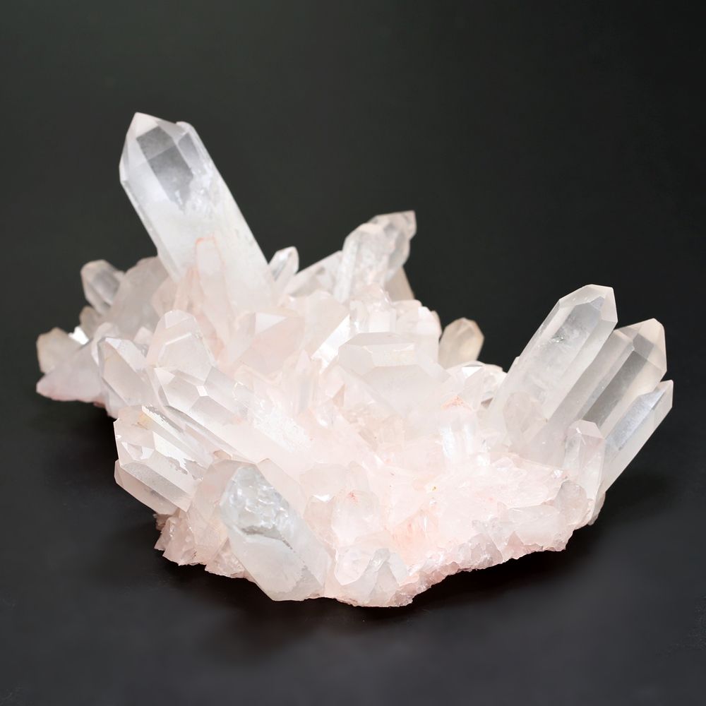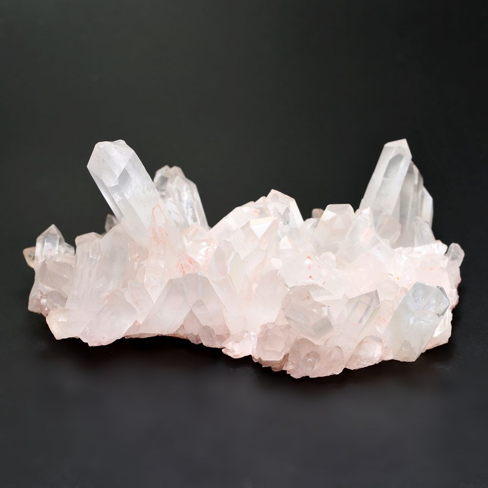 ご覧のお品は、ピンクカラーの水晶クラスターです。 なんとも柔らかな雰囲気になんとも癒されます☆また、このように透明度を保っているクオリティも秀逸です!