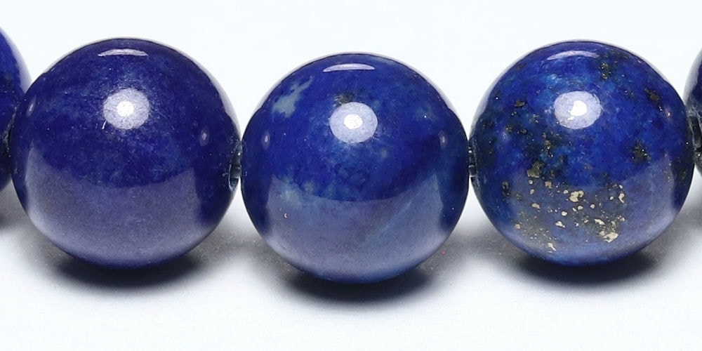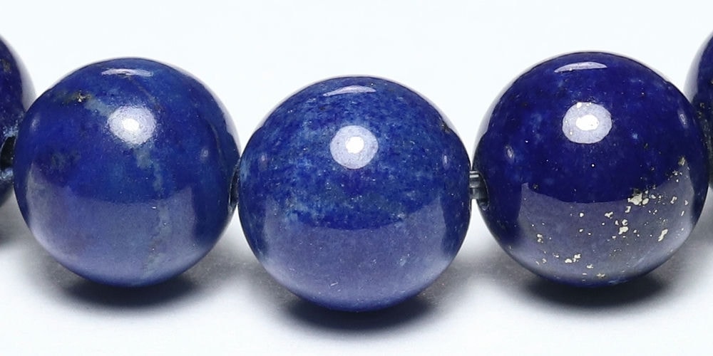 ラピスラズリはパイライトや別鉱物が大量に内包されたものもよく流通しておりますが、品質の面ではパイライトが少なめで、ブルーが強い色ムラ少ないラピスラズリが良質とされています。