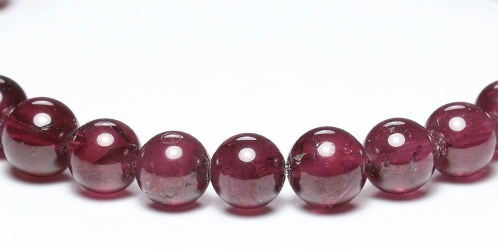 深い赤紫色を楽しむことができるロードライトガーネットブレスレットでございます。