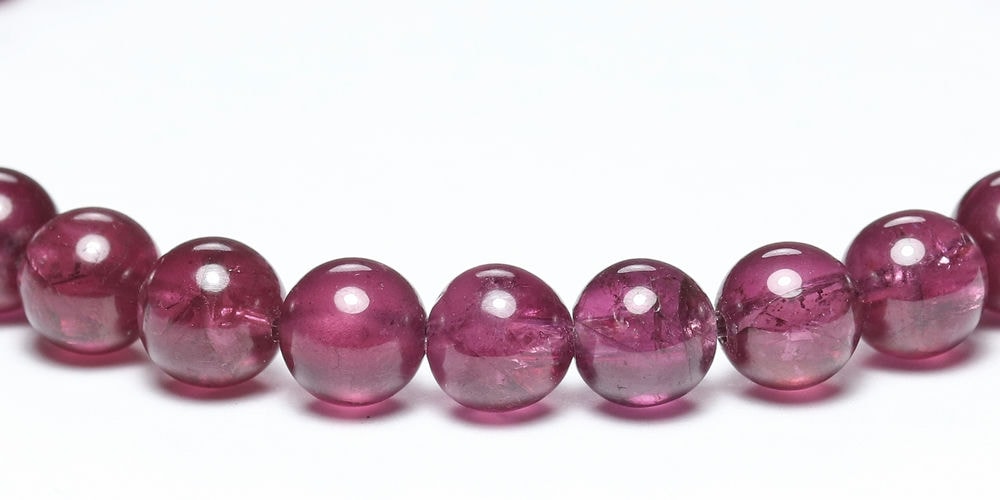 深い赤紫色を楽しむことができるロードライトガーネットブレスレットでございます。