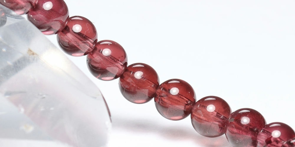 深い赤紫色を楽しむことができるロードライトガーネットブレスレットでございます。