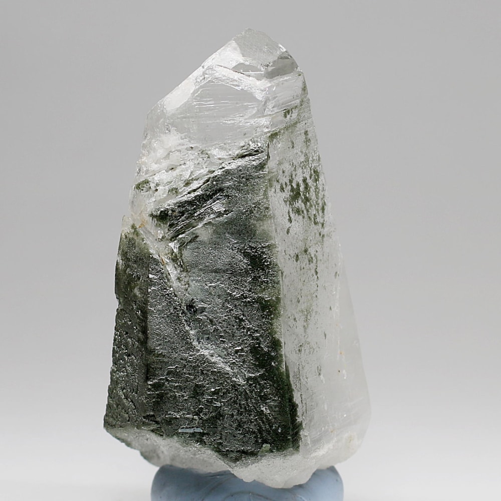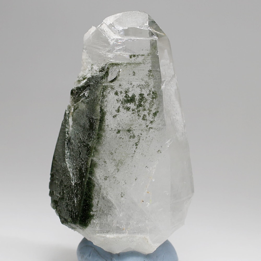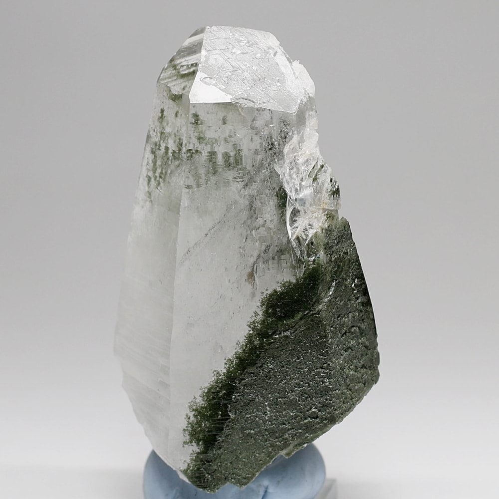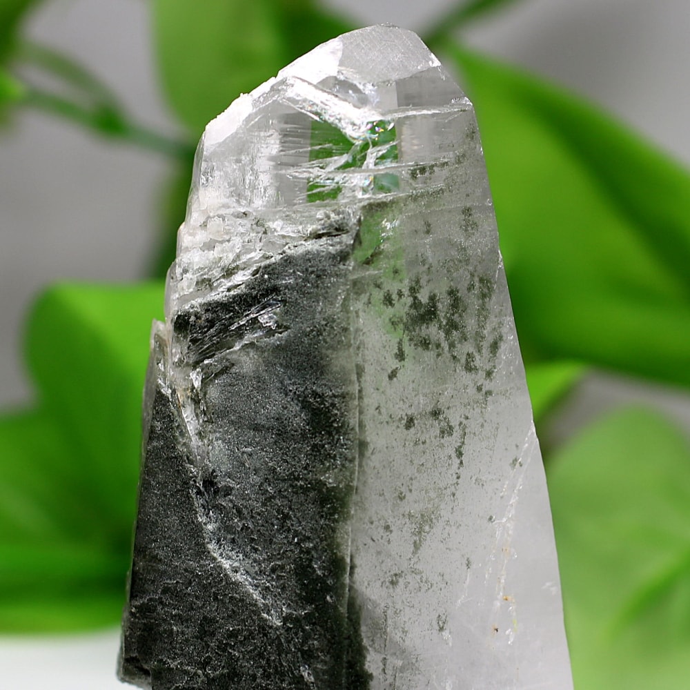 ご覧のお品は、照りと透明度を併せ持ち、悠久の時を刻んだ成長の証とも言えるバーコード(条線)に、ガネーシュヒマール産らしい荒々しくも神秘的な美しさを体現したクローライトの共生も見事な、自信を持っておすすめできる逸品です。