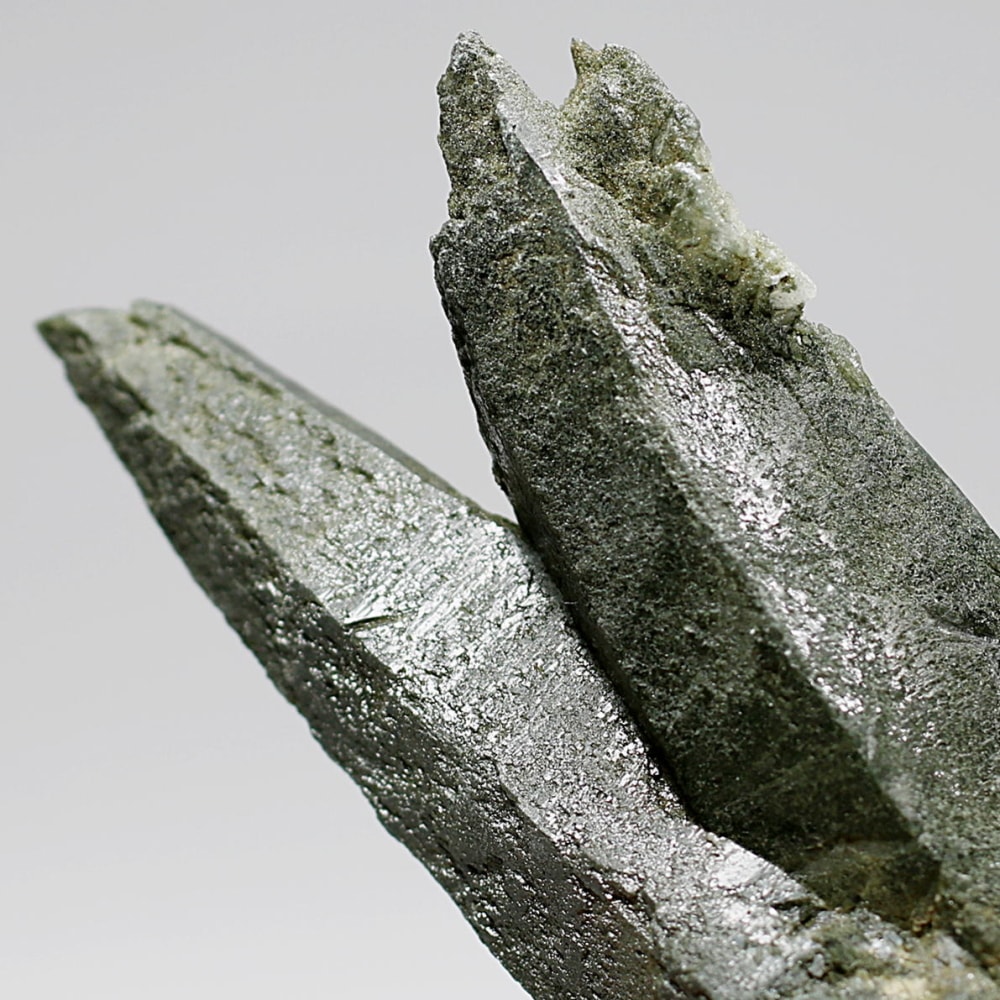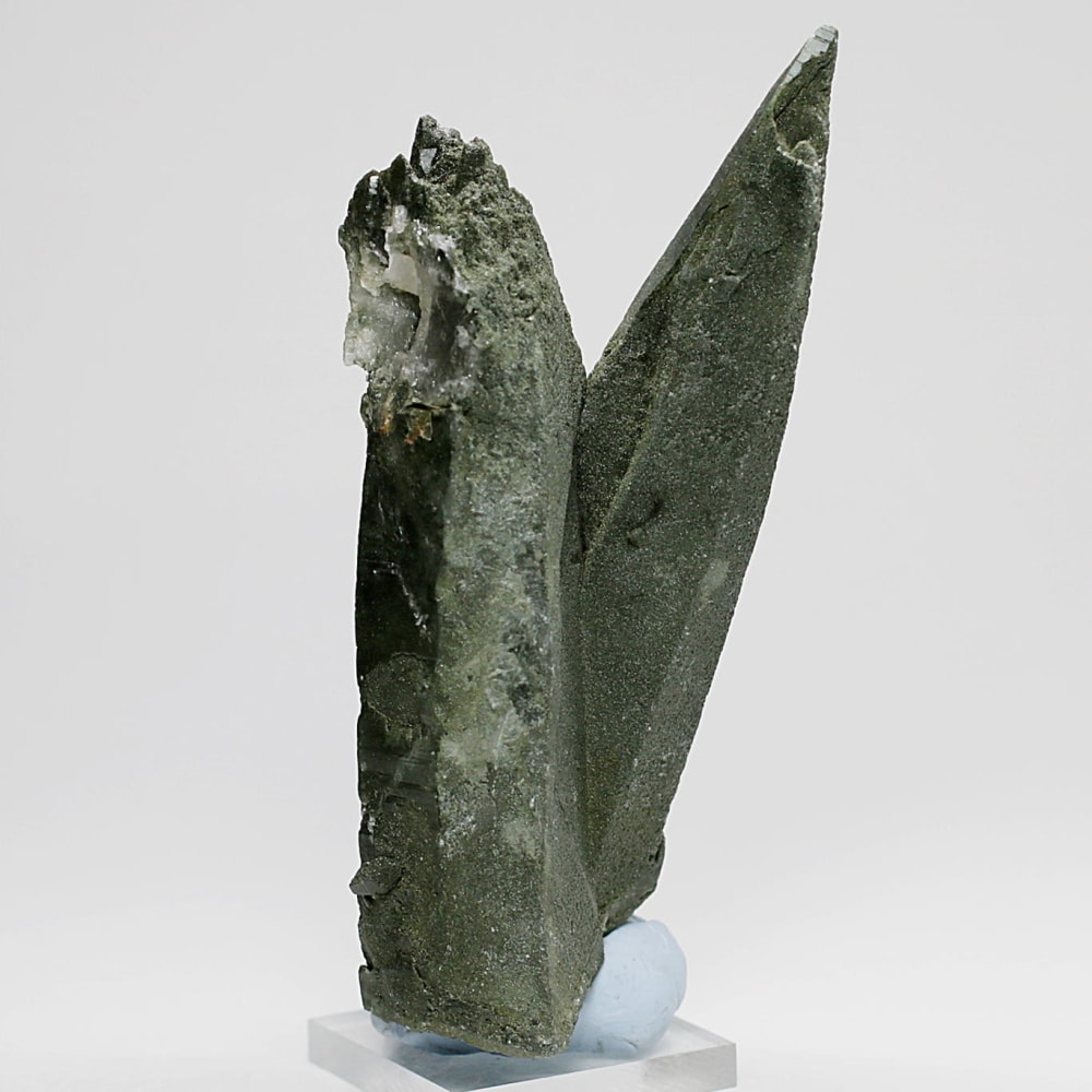 ご覧のお品は、ヒマラヤの大地が育んだ水晶がクローライトに覆われ、二本の結晶が近しく寄り合い、そっと支え合うように立ち上がる逸品です。透明感の奥に溶け込む深い緑が、山の記憶と森の息吹を映し出し、手にした瞬間に静かな自然の気配がふわりと広がります。
