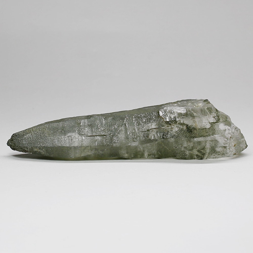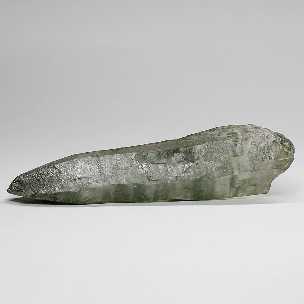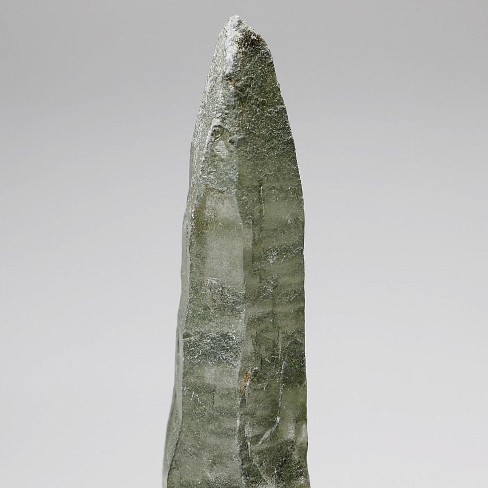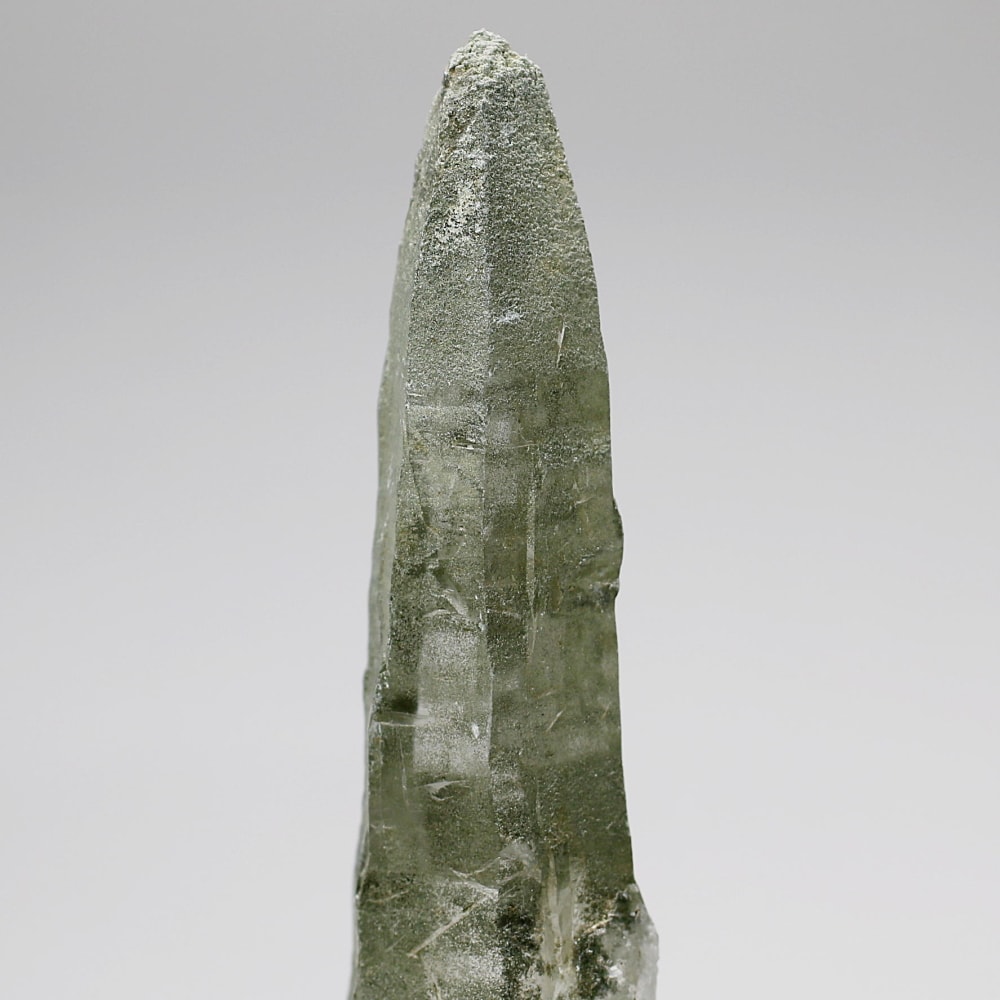 ご覧のお品は、水晶ポイントにクローライト(緑泥石)が美しく付着した、ガネッシュヒマール産ならではの魅力を堪能できる逸品です。先端へ向かって鋭く伸びる結晶と、それを覆う深いグリーンは、『水晶は透明なもの』という既成概念を鮮やかに覆してくれます。
