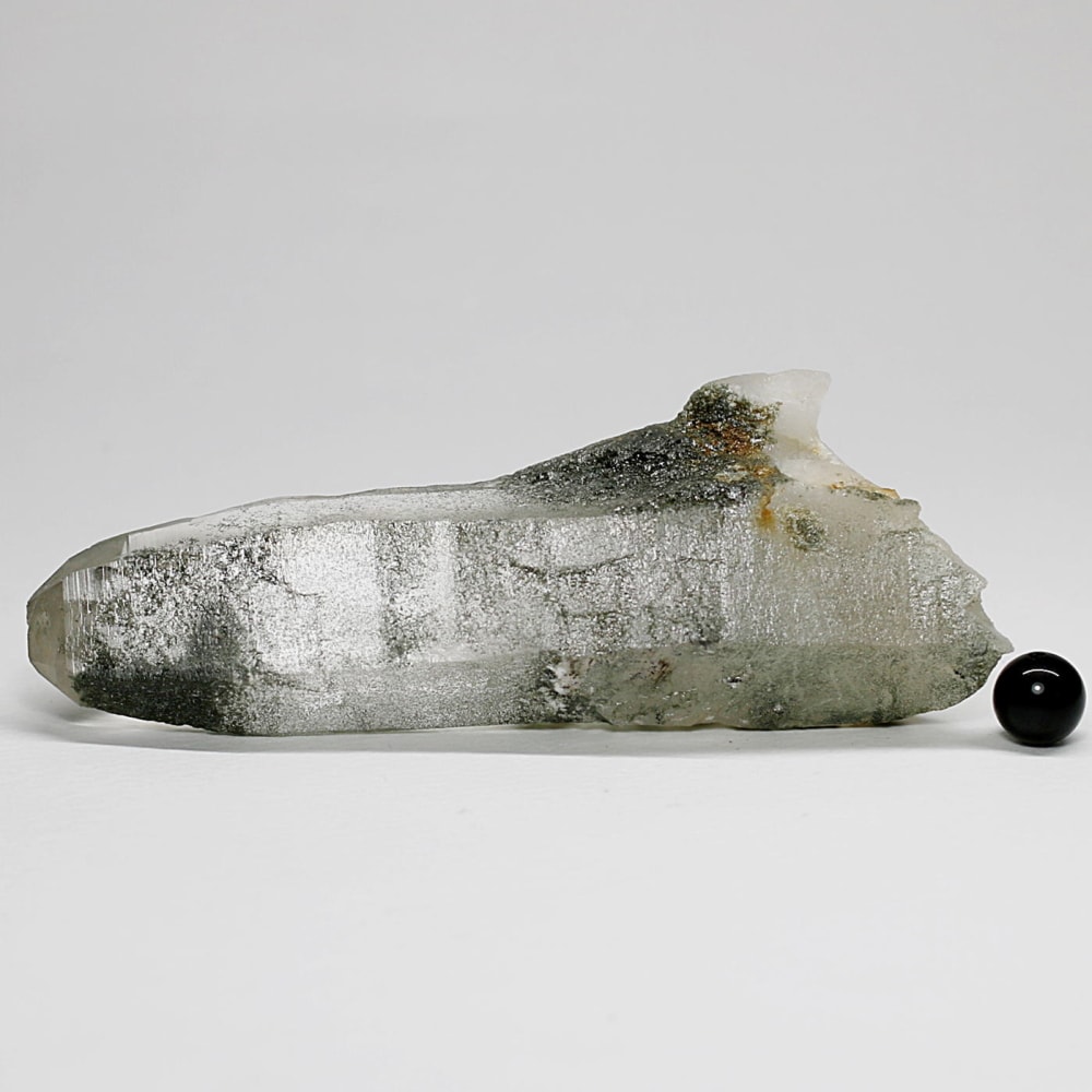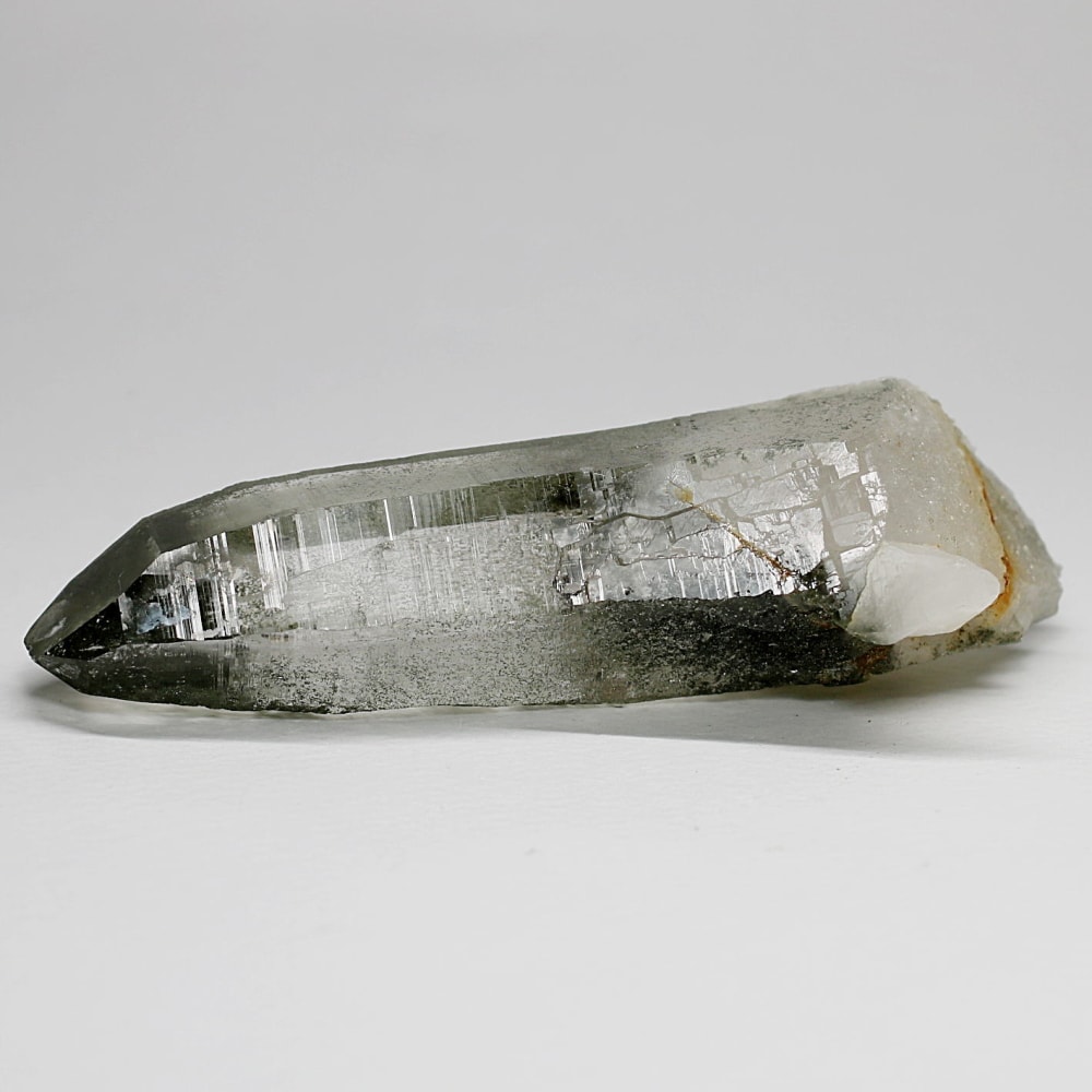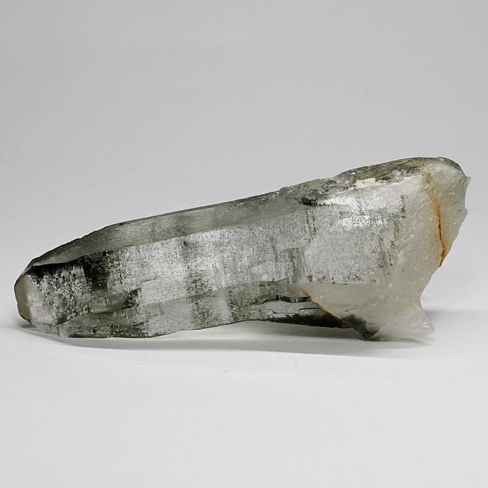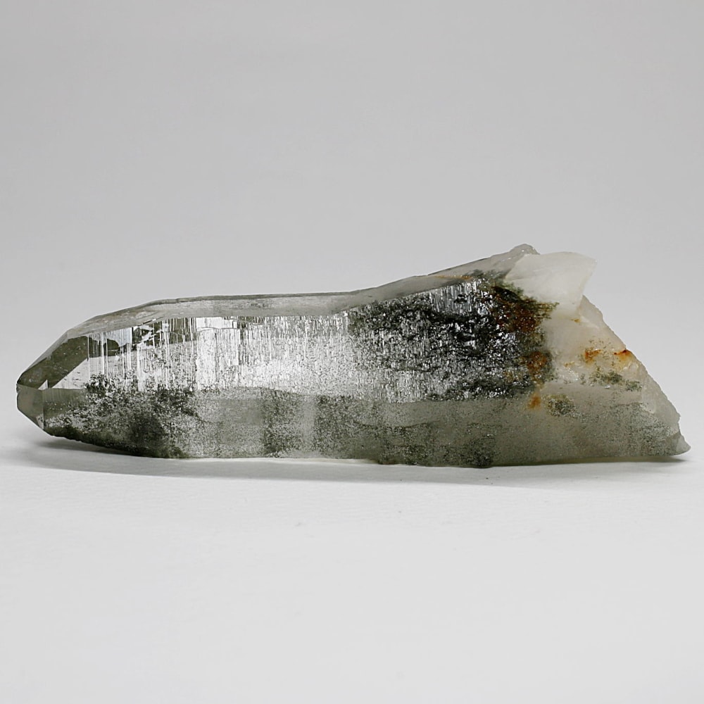 ご覧のお品は、照りと透明度を併せ持ち、悠久の時を刻んだ成長の証とも言えるバーコード(条線)に、ガネーシュヒマール産らしい荒々しくも神秘的な美しさを体現したクローライトの共生も見事な、自信を持っておすすめできる逸品です。