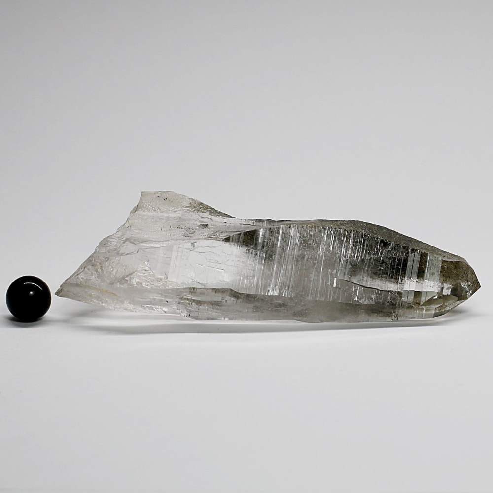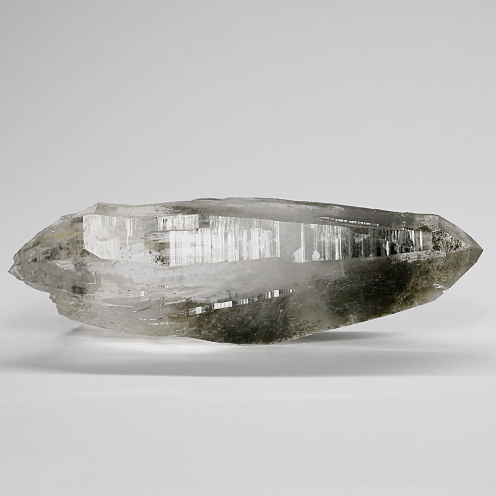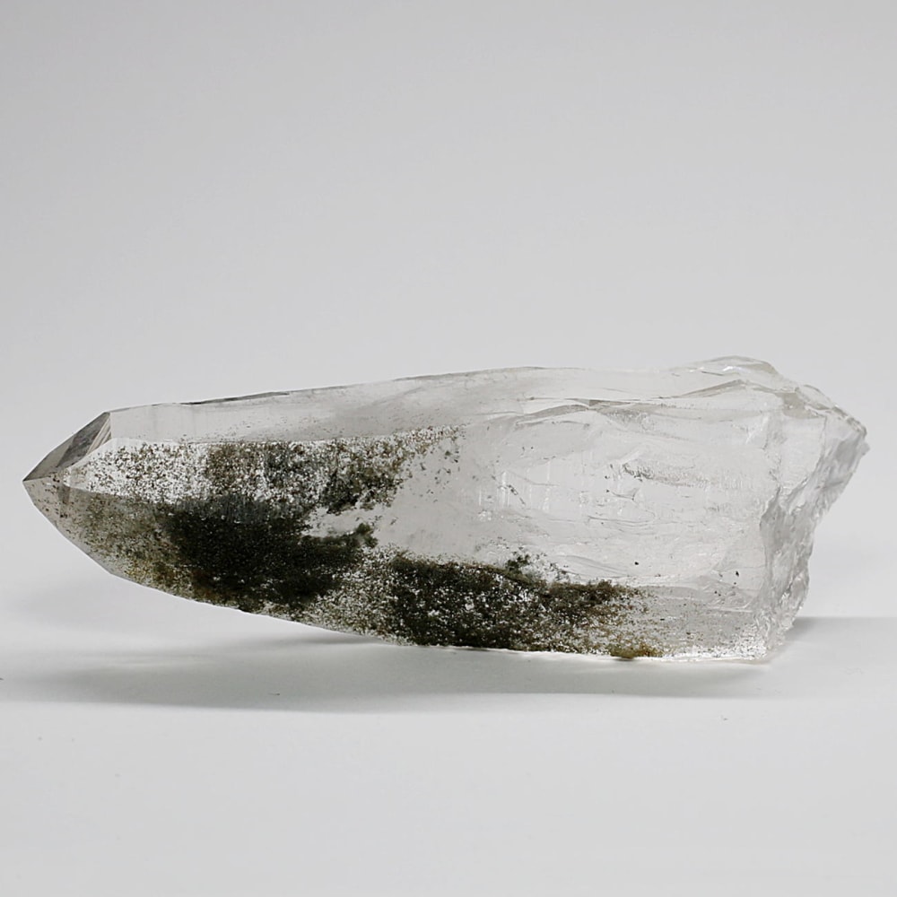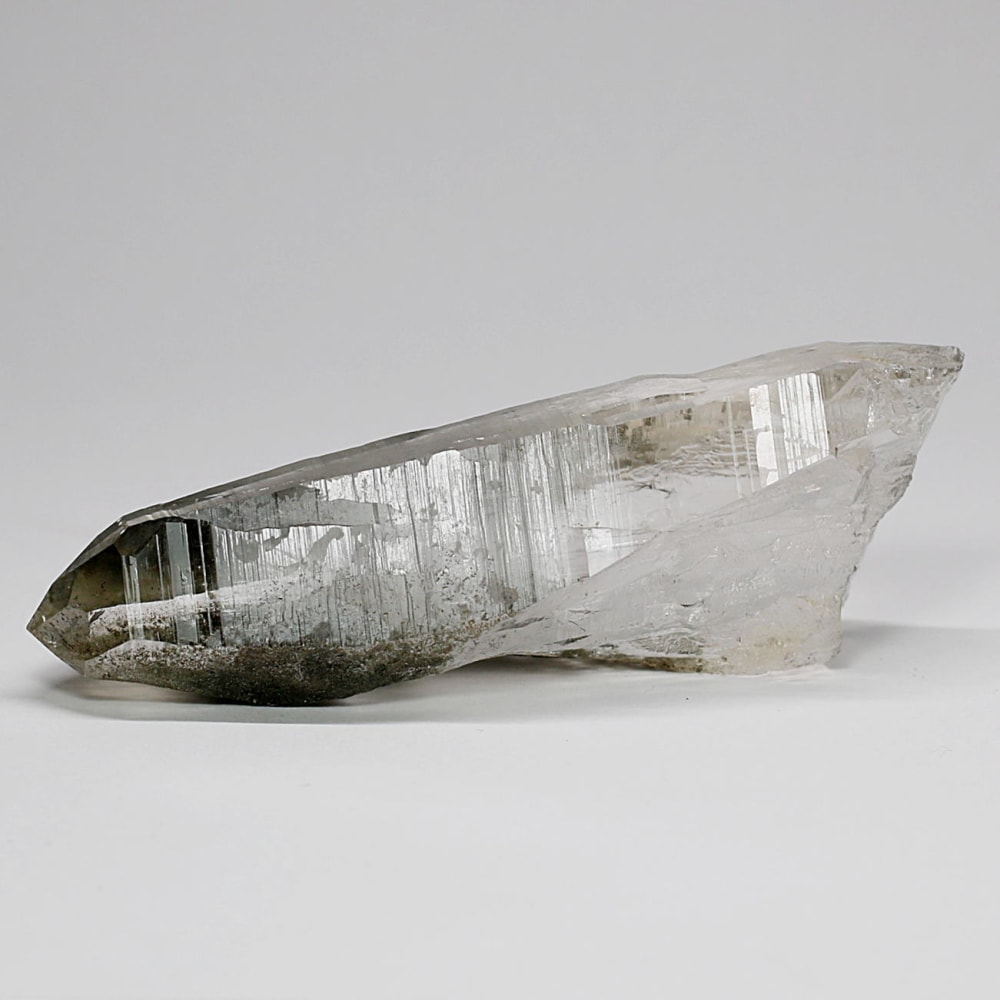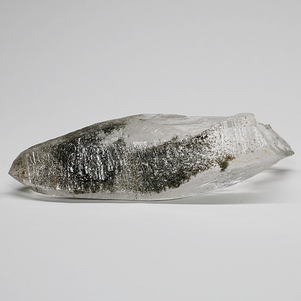 ご覧のお品は、照りと透明度を併せ持ち、悠久の時を刻んだ成長の証とも言えるバーコード(条線)に、ガネーシュヒマール産らしい荒々しくも神秘的な美しさを体現したクローライトの共生も見事な、自信を持っておすすめできる逸品です。