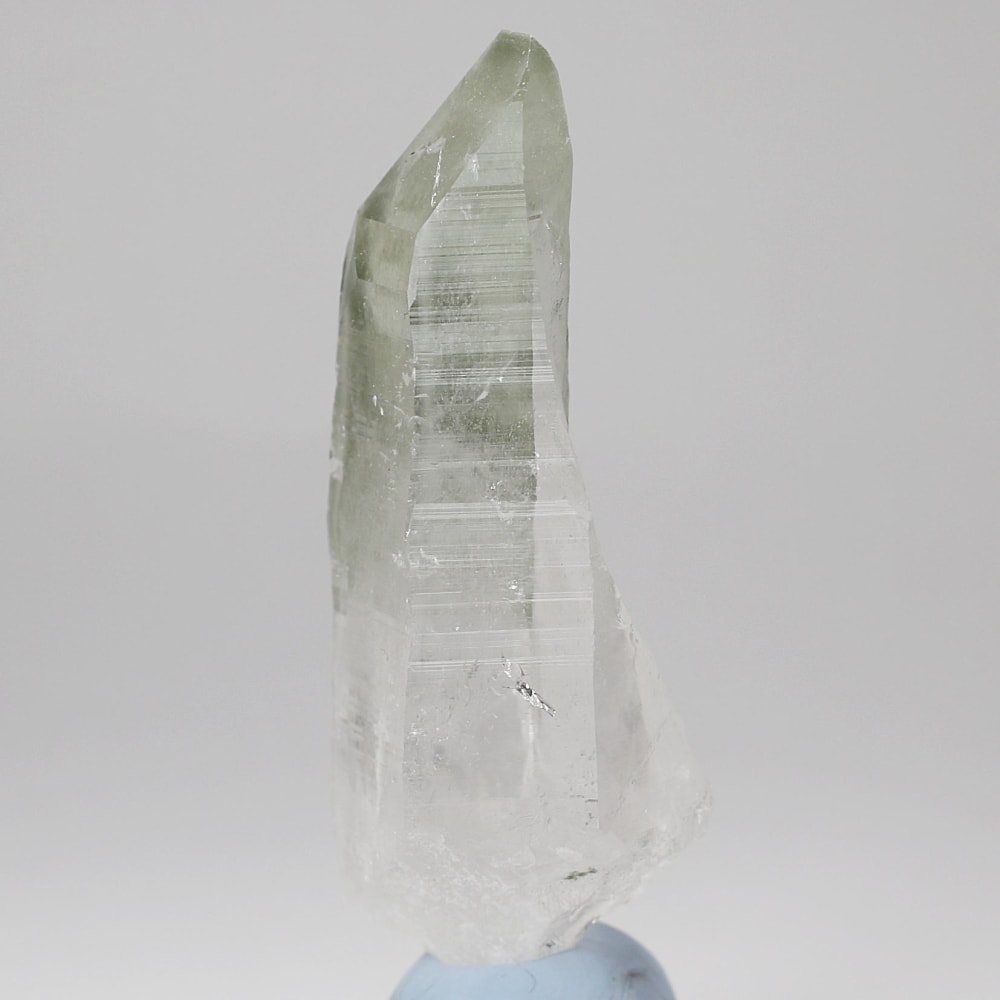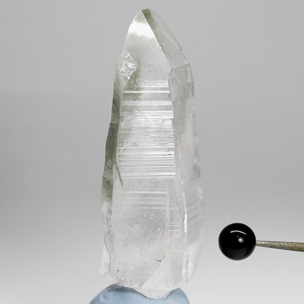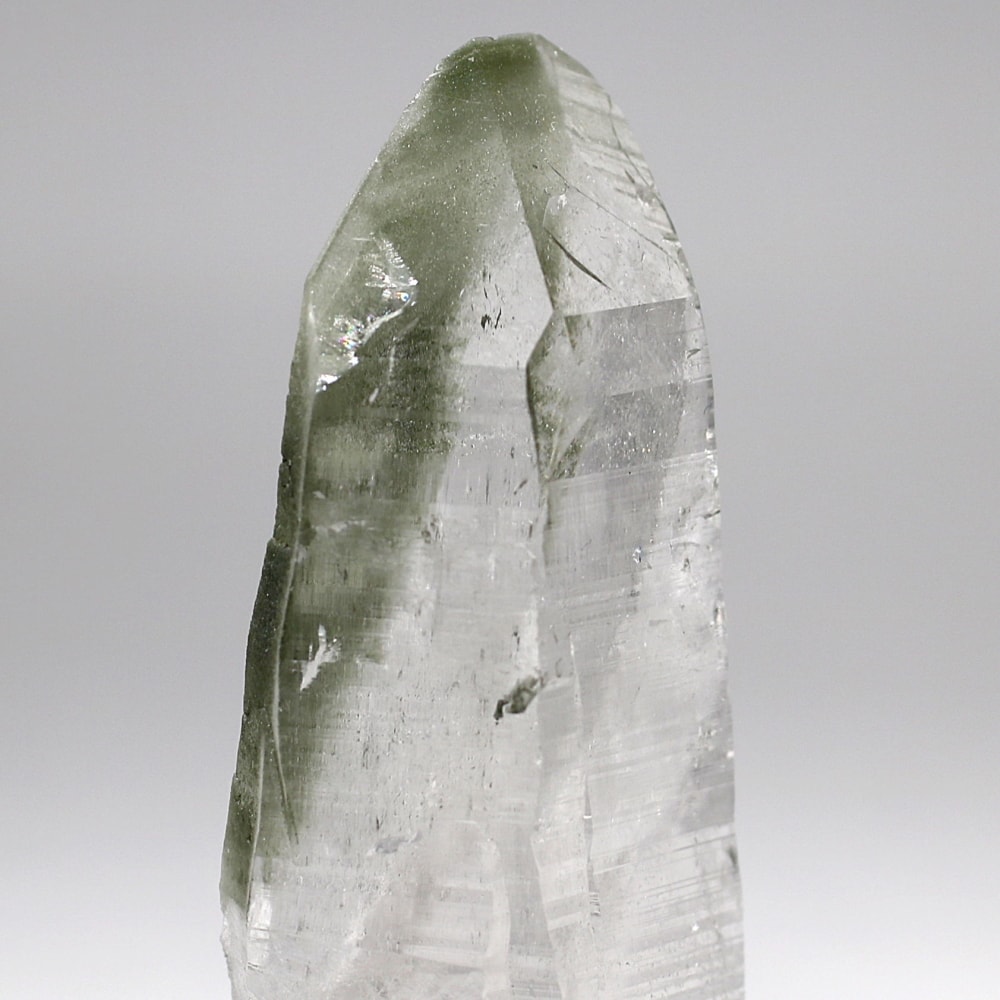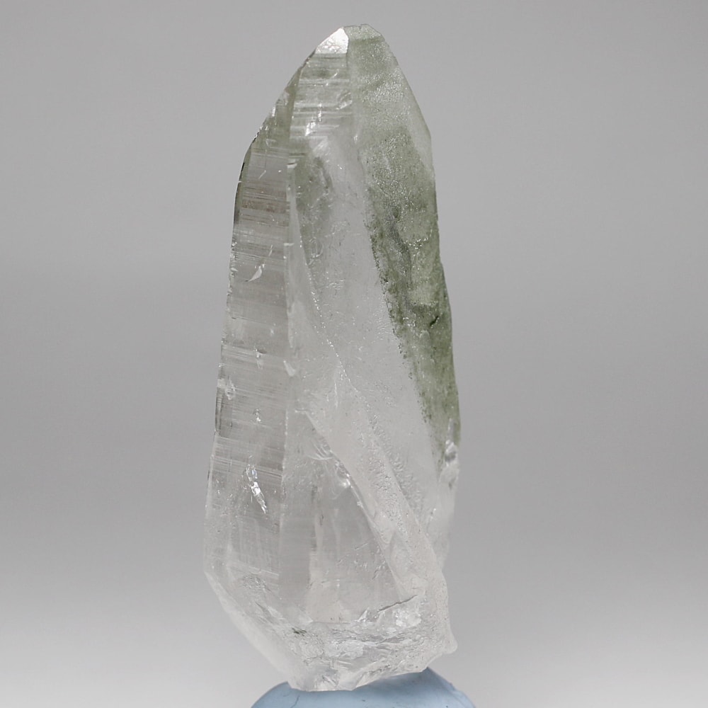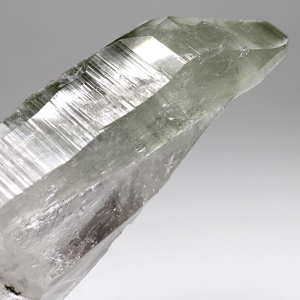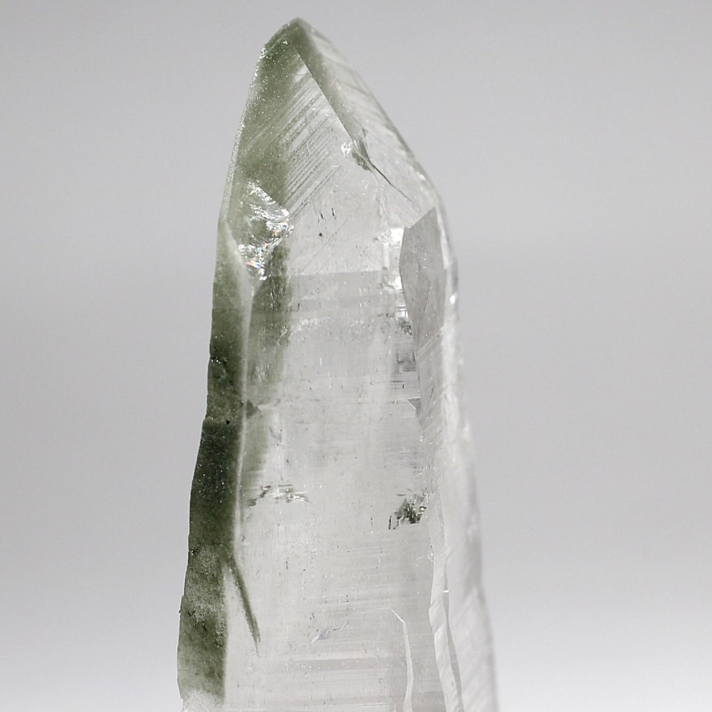 ご覧のお品は、照りと透明度を併せ持ち、悠久の時を刻んだ成長の証とも言えるバーコード(条線)に、ガネーシュヒマール産らしい荒々しくも神秘的な美しさを体現したクローライトの共生も見事な、自信を持っておすすめできる逸品です。