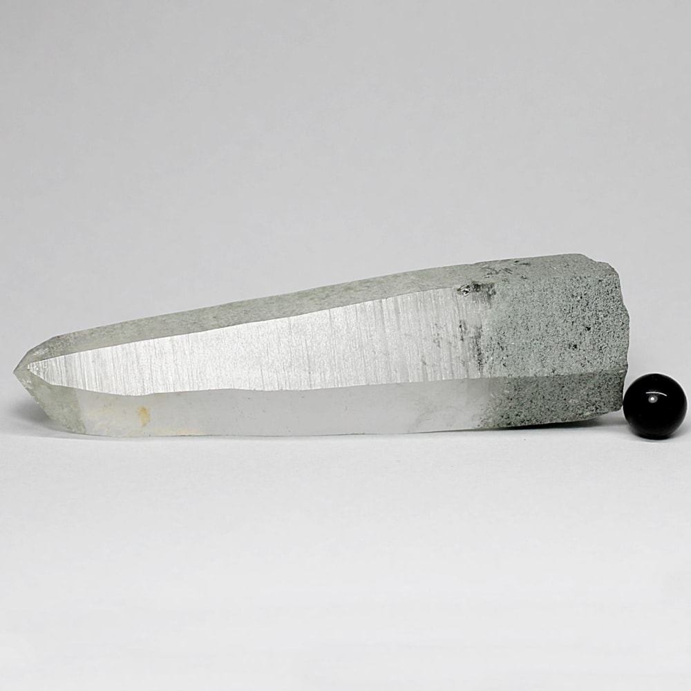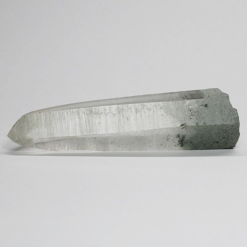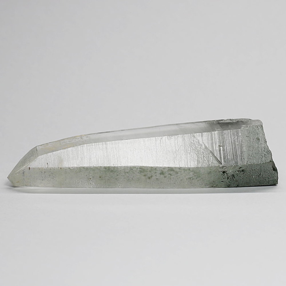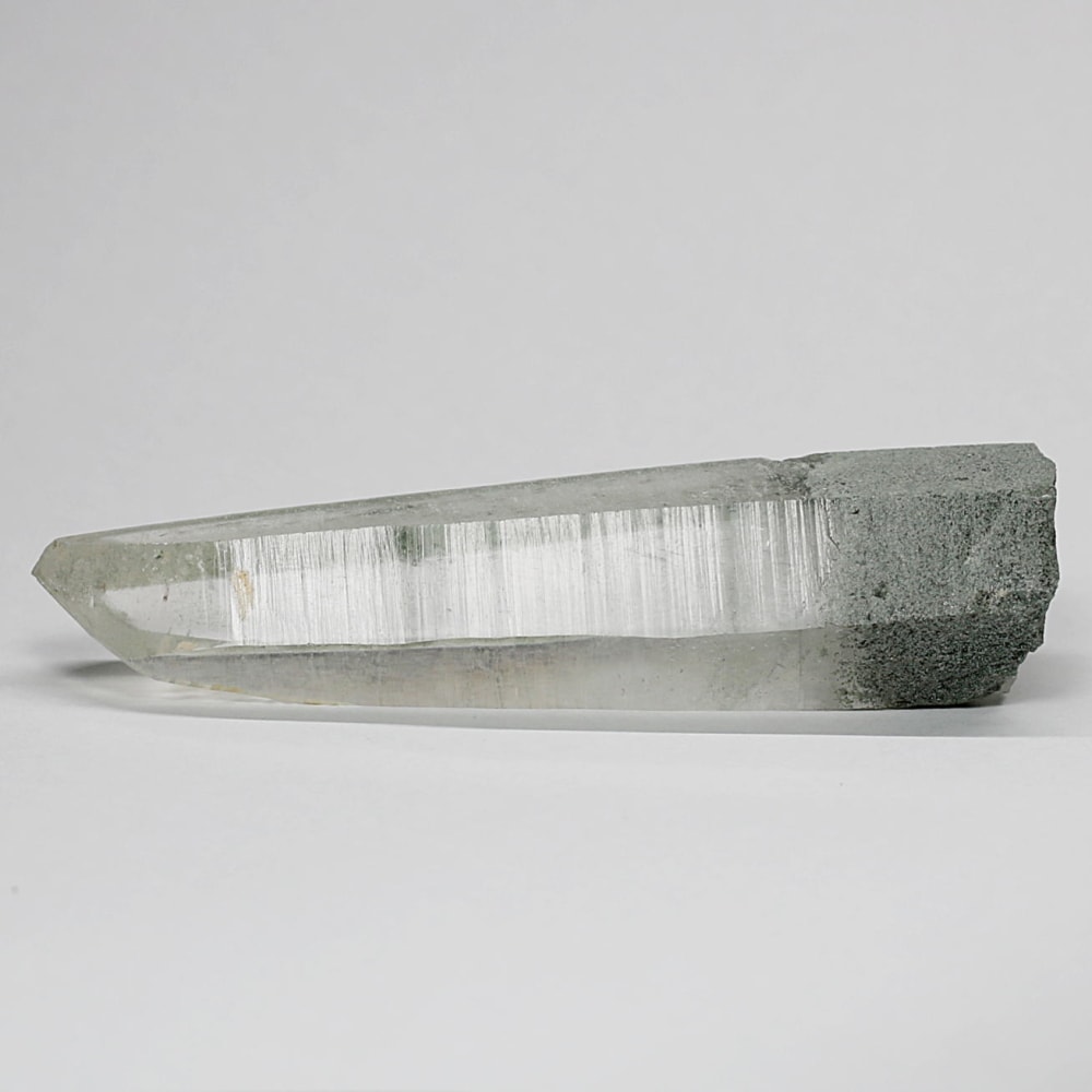 ご覧のお品は、照りと透明度を併せ持ち、悠久の時を刻んだ成長の証とも言えるバーコード(条線)に、ガネーシュヒマール産らしい荒々しくも神秘的な美しさを体現したクローライトの共生も見事な、自信を持っておすすめできる逸品です。