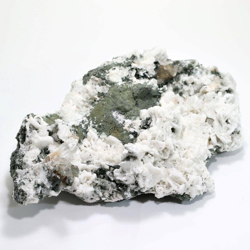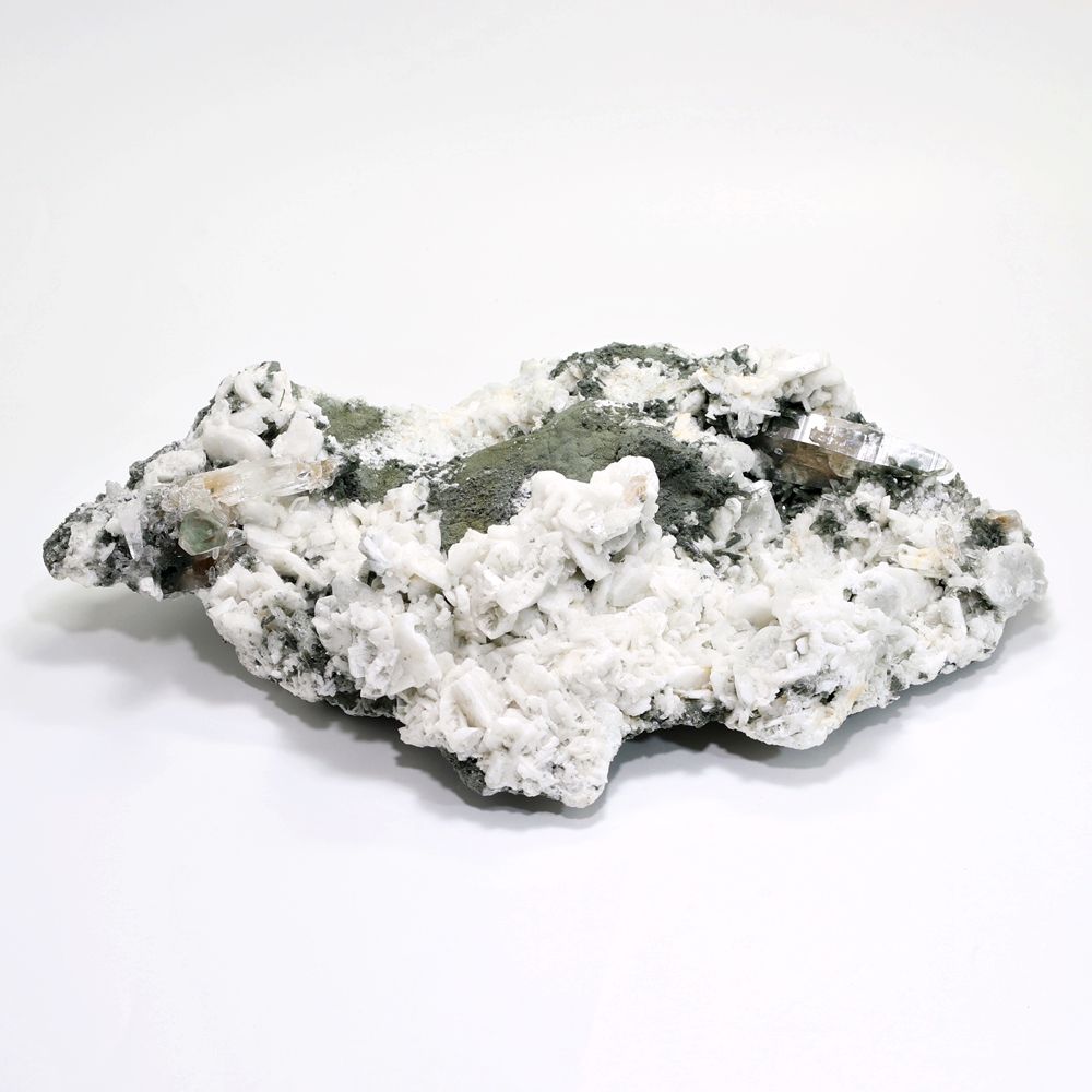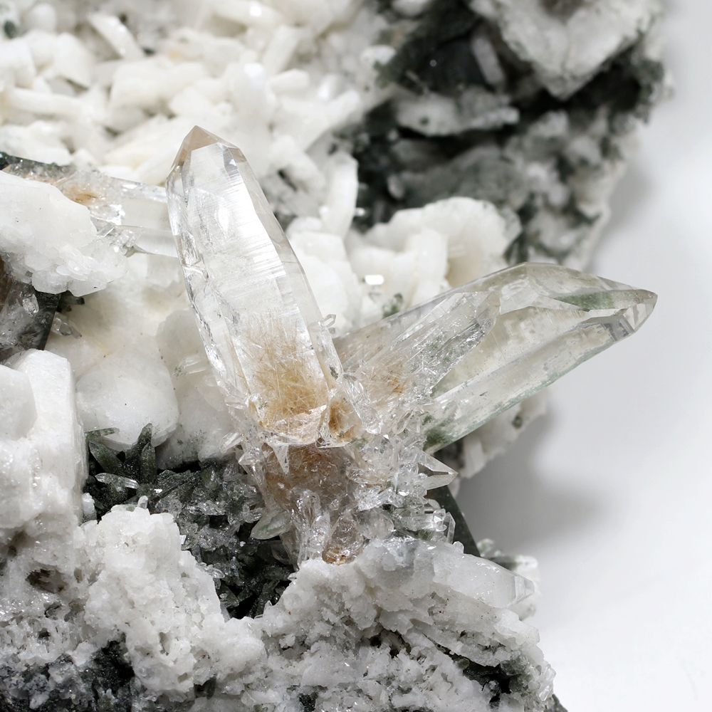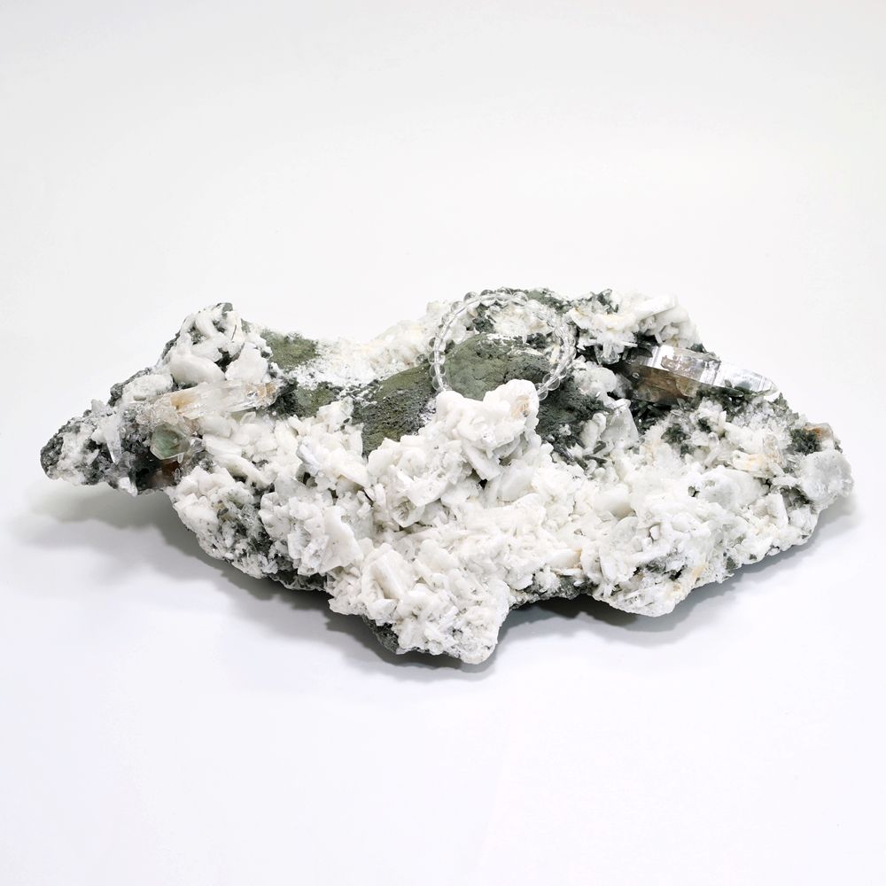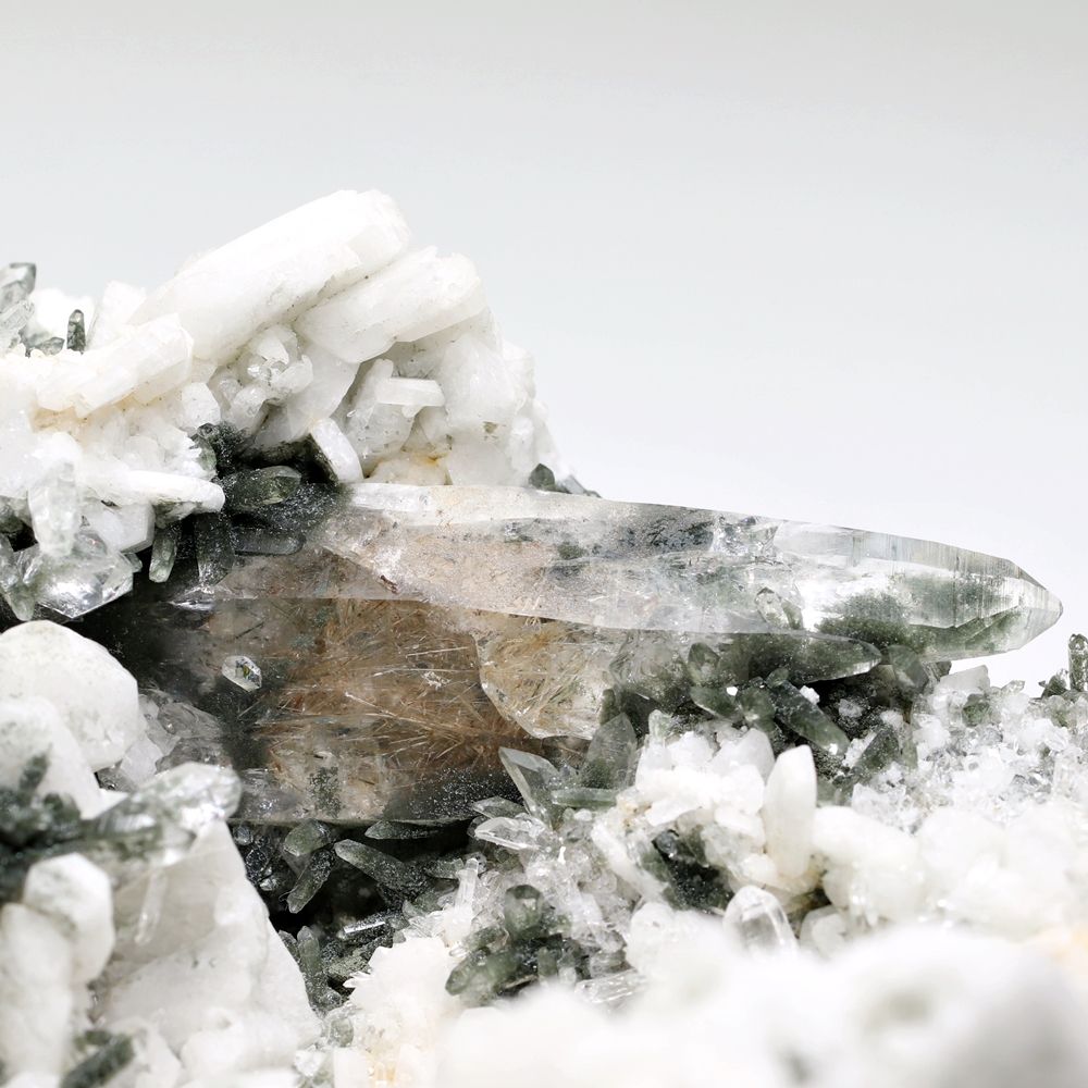 クローライト(緑泥石)が寄り添うことで生まれる、ガネッシュヒマール産らしい奥深い美しさ。見飽きることのないディテールが随所に息づいておりますので、お迎えの際には、ぜひ隅々までその世界観をご堪能ください。