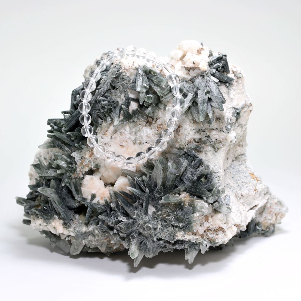 クローライト(緑泥石)が寄り添うことで生まれる、ガネッシュヒマール産らしい奥深い美しさ。見飽きることのないディテールが随所に息づいておりますので、お迎えの際には、ぜひ隅々までその世界観をご堪能ください。