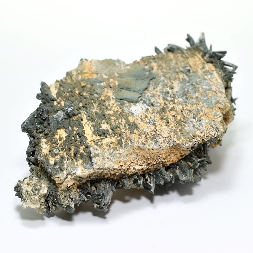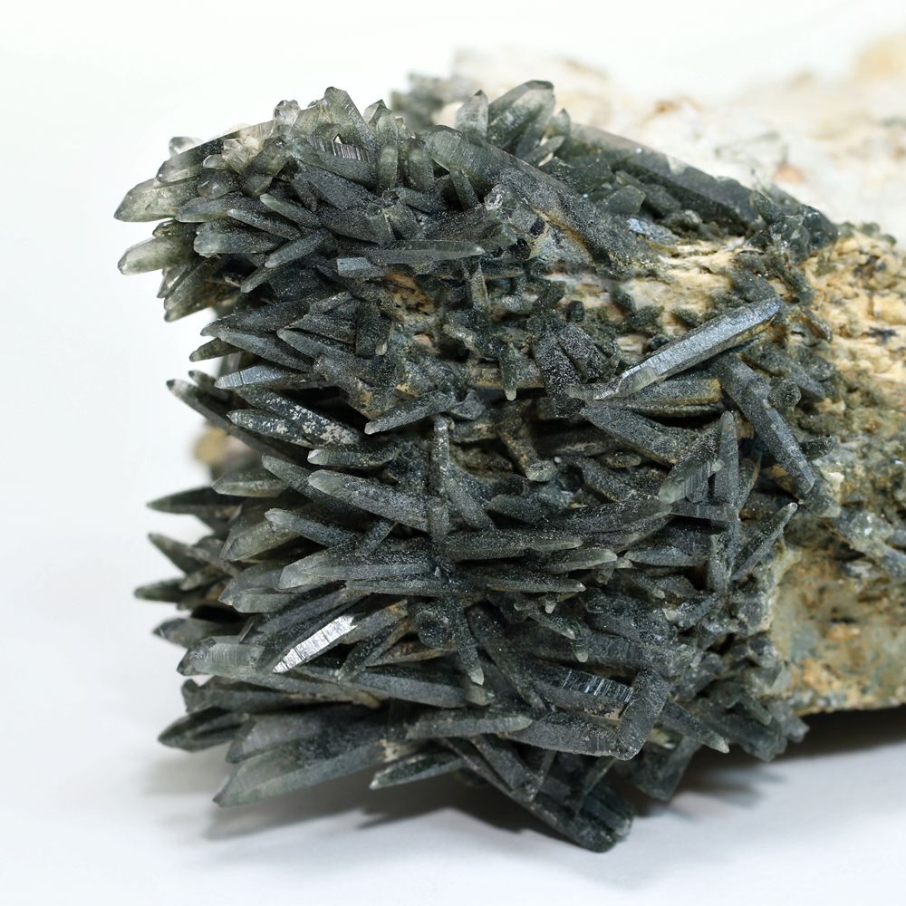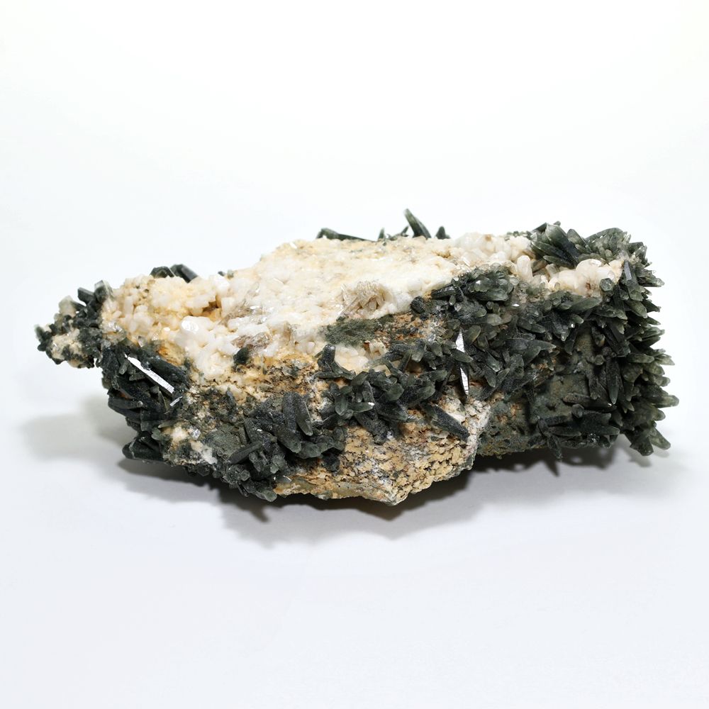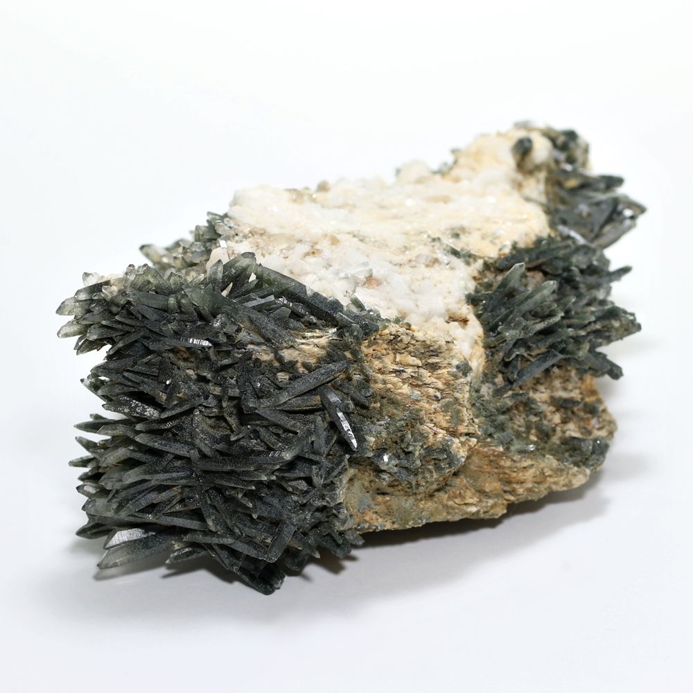 ご覧のお品は、母岩を中心に、深緑に覆われた鋭いニードルクォーツが放射状に育つ、他に類を見ない非常に個性的なディテールを持つ逸品です。