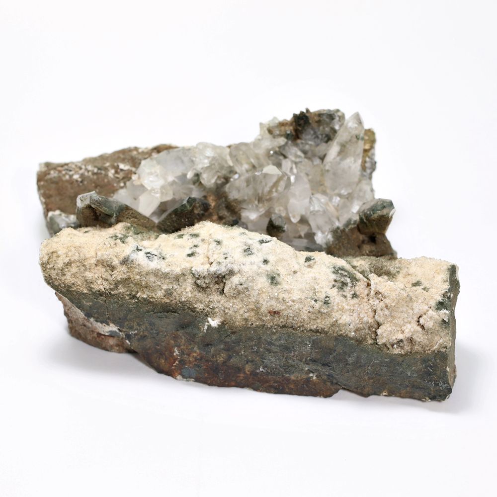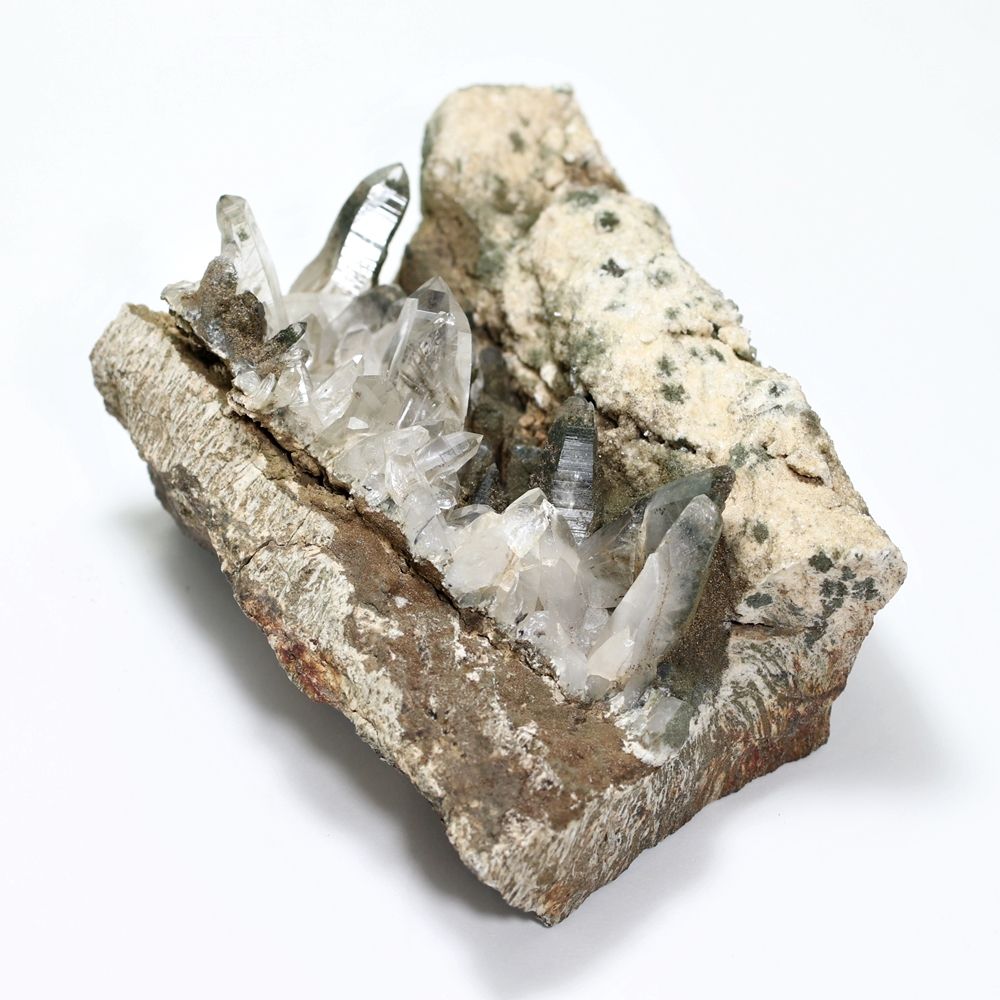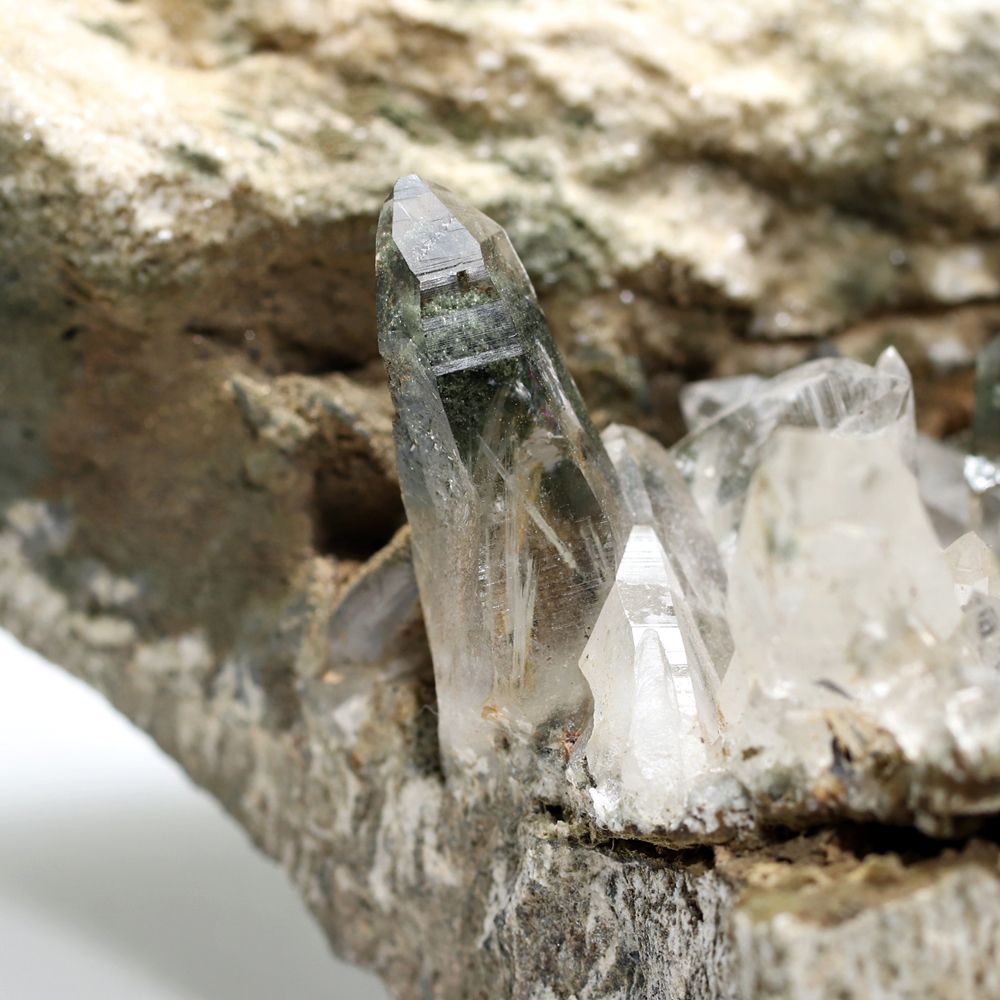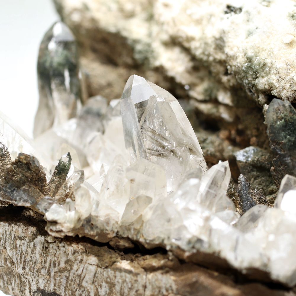 クローライト(緑泥石)が寄り添うことで生まれる、ガネッシュヒマール産らしい奥深い美しさ。見飽きることのないディテールが随所に息づいておりますので、お迎えの際には、ぜひ隅々までその世界観をご堪能ください。