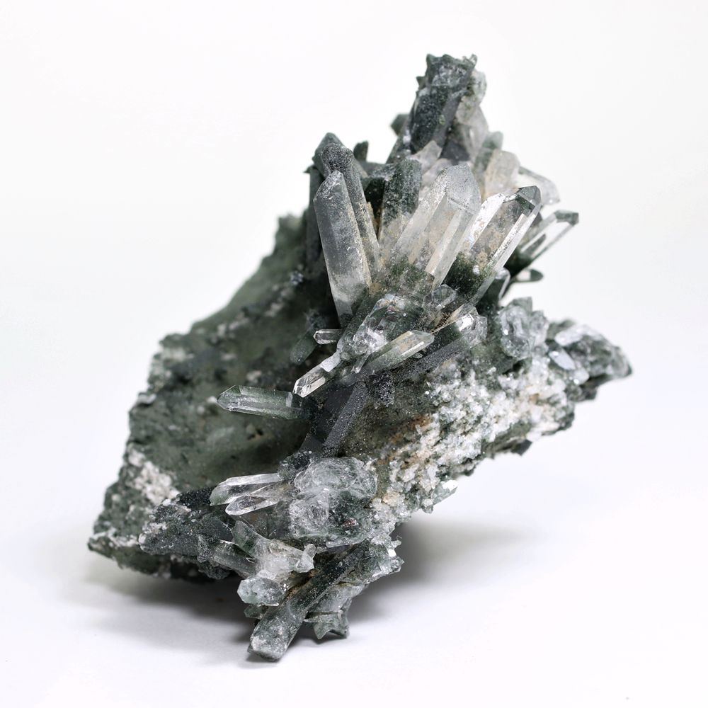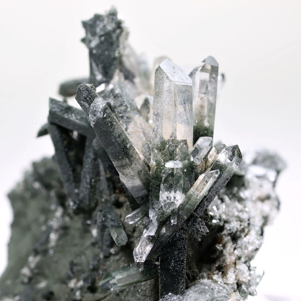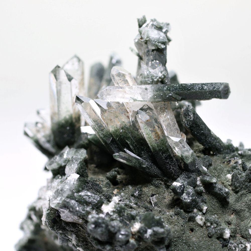 クローライト(緑泥石)が寄り添うことで生まれる、ガネッシュヒマール産らしい奥深い美しさ。見飽きることのないディテールが随所に息づいておりますので、お迎えの際には、ぜひ隅々までその世界観をご堪能ください。
