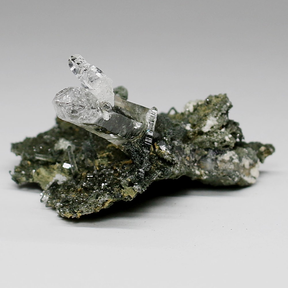 クローライト(緑泥石)が付着するガネッシュヒマール産らしい魅力、小さいサイズながら見飽きることのないディテールをしておりますので、お迎えの際にはどうぞ隅々までご堪能くださいませ!