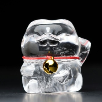 透明度の高いブラジル産天然水晶から丁寧に削り出された「招き猫」でございます。