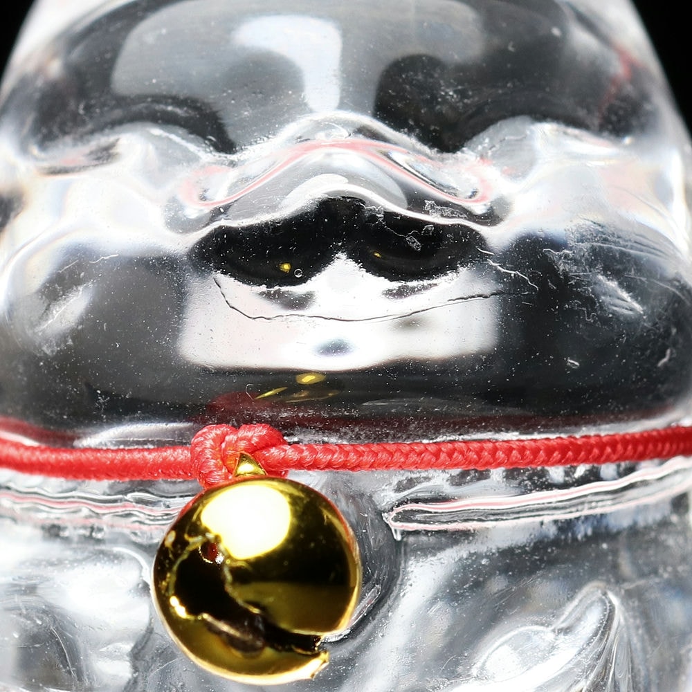 「金の鈴」が付いている「招き猫」は、「水晶」の持つ浄化と開運の力、そして金の鈴が持つ金運と魔除けの力が相乗効果を生み出し、より多くの幸運と繁栄を招く縁起物として伝えられます。