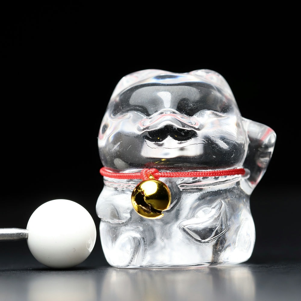 鈴も鳴ル♪輝きと福を呼ぶ☆水晶まねき猫