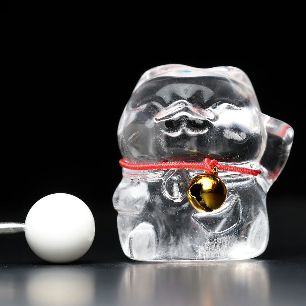 鈴も鳴ル♪輝きと福を呼ぶ☆水晶まねき猫