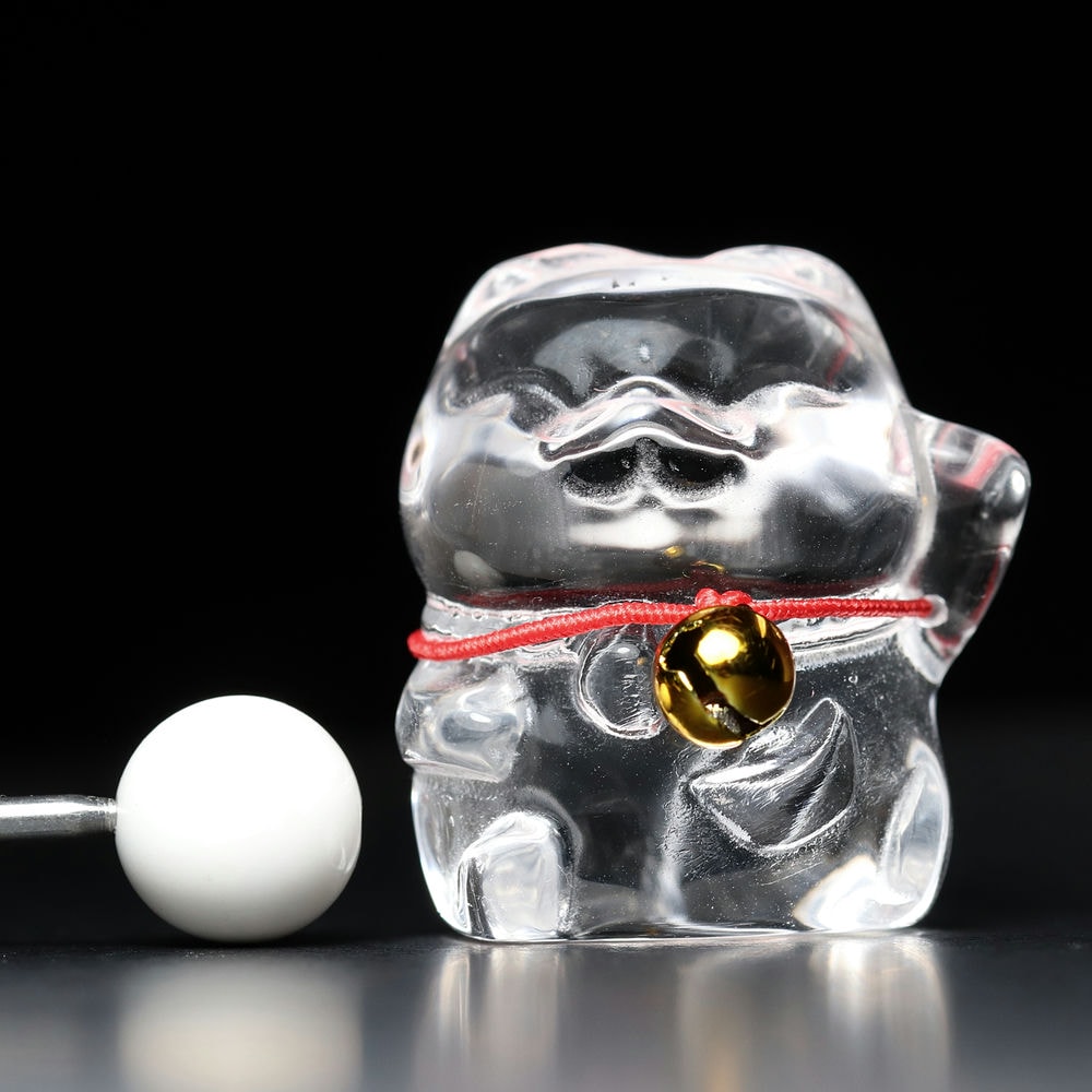 鈴も鳴ル♪輝きと福を呼ぶ☆水晶まねき猫