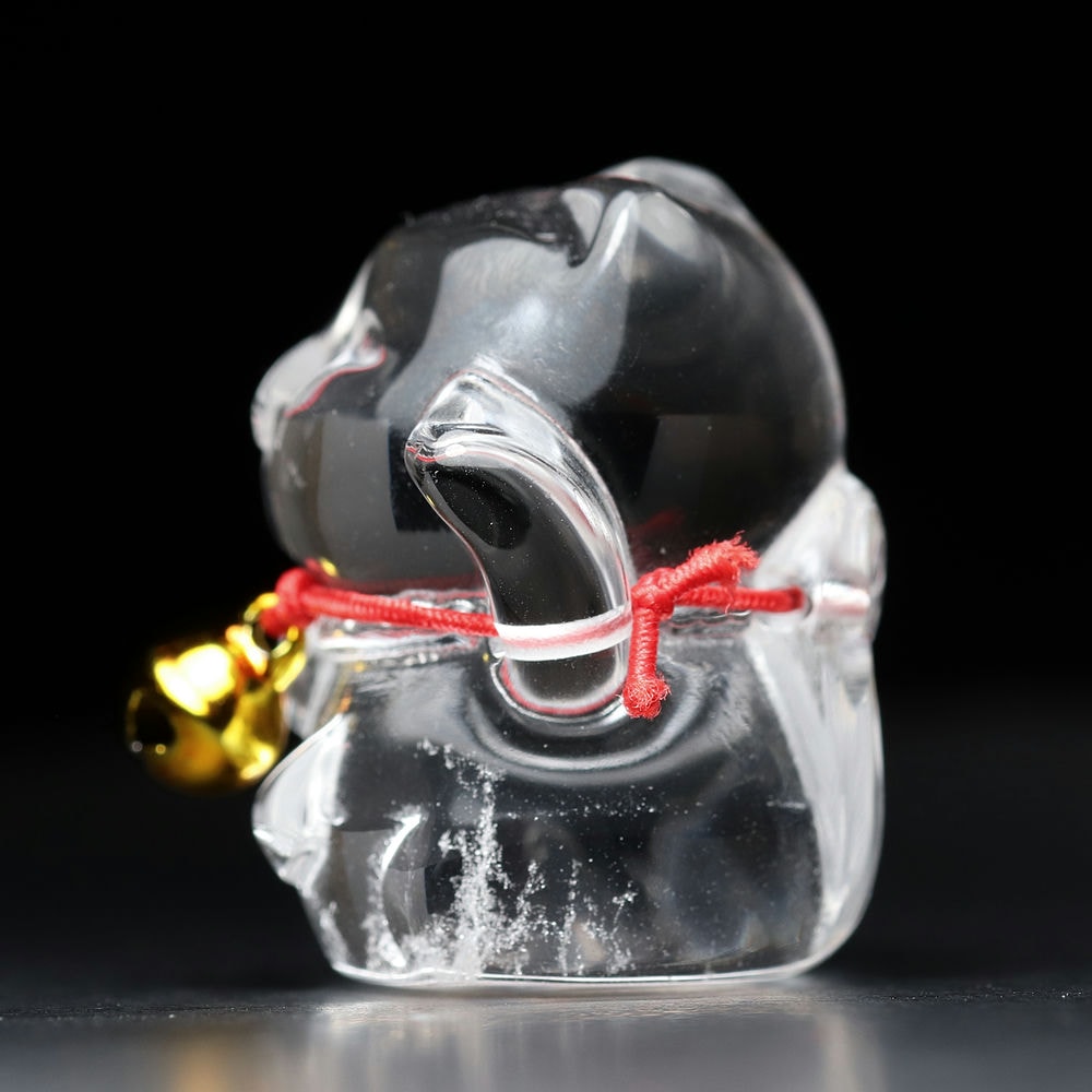 「金の鈴」が付いている「招き猫」は、「水晶」の持つ浄化と開運の力、そして金の鈴が持つ金運と魔除けの力が相乗効果を生み出し、より多くの幸運と繁栄を招く縁起物として伝えられます。