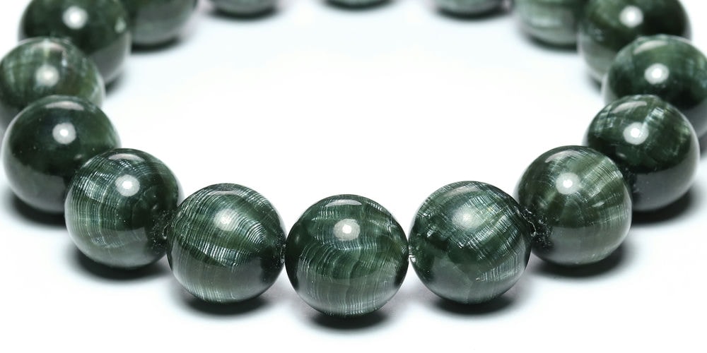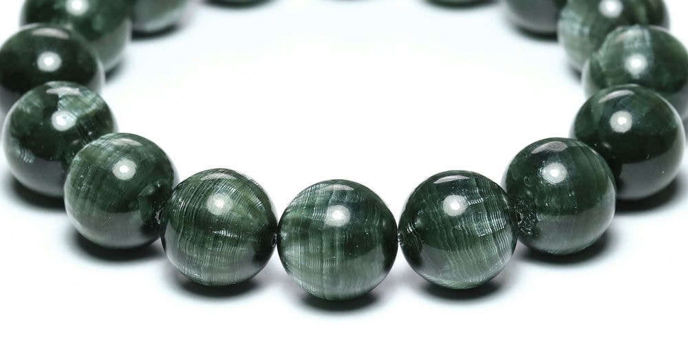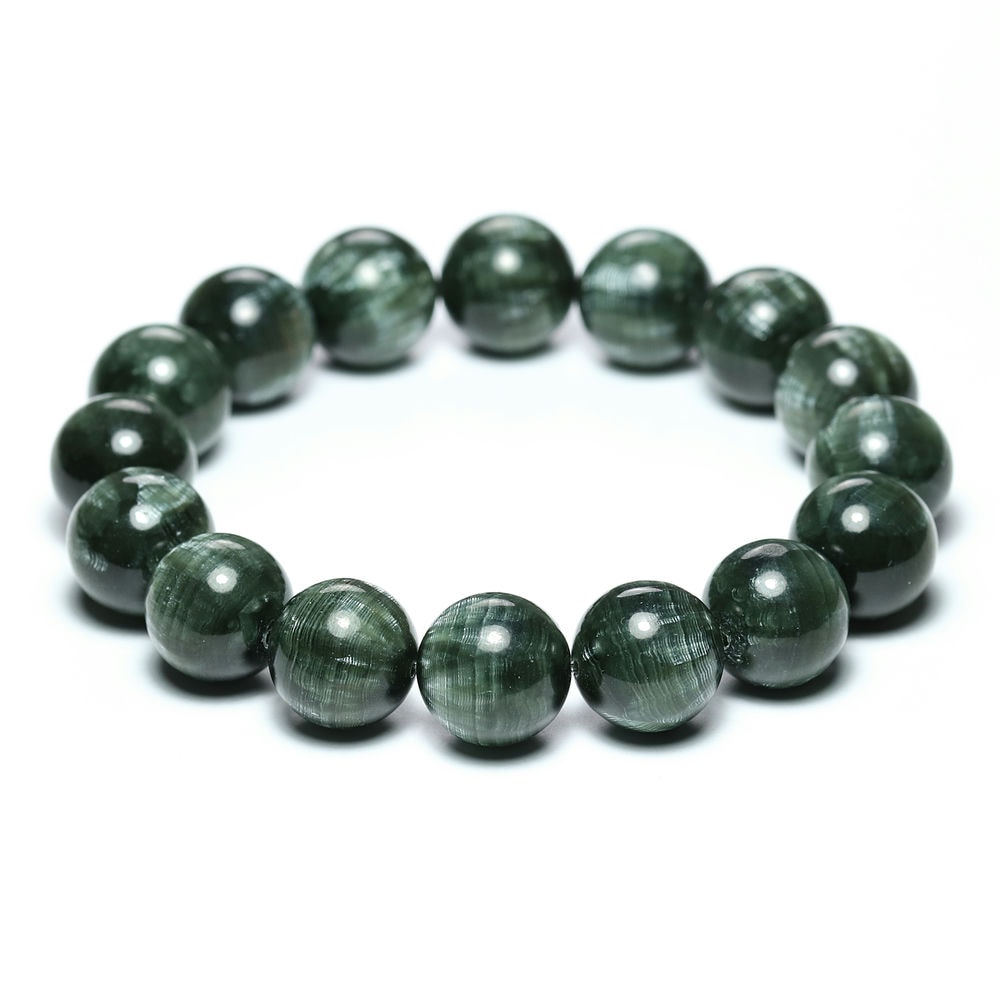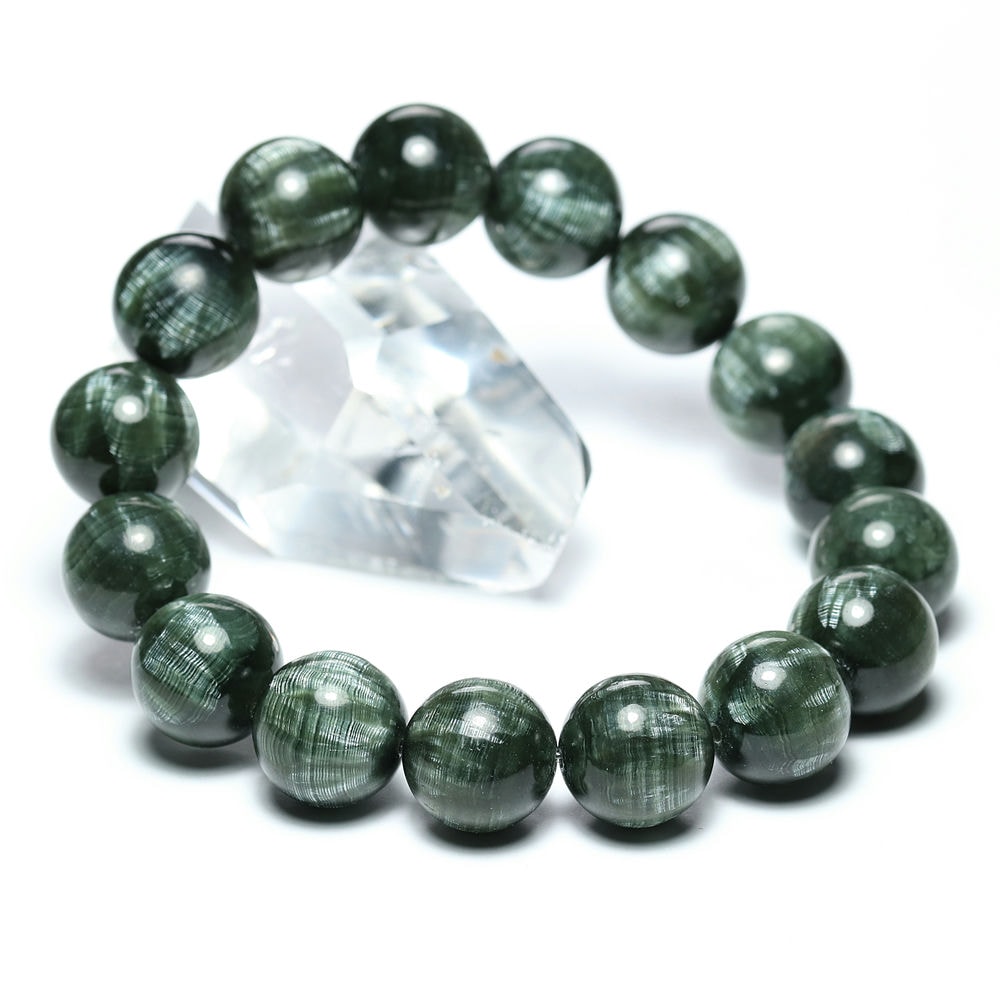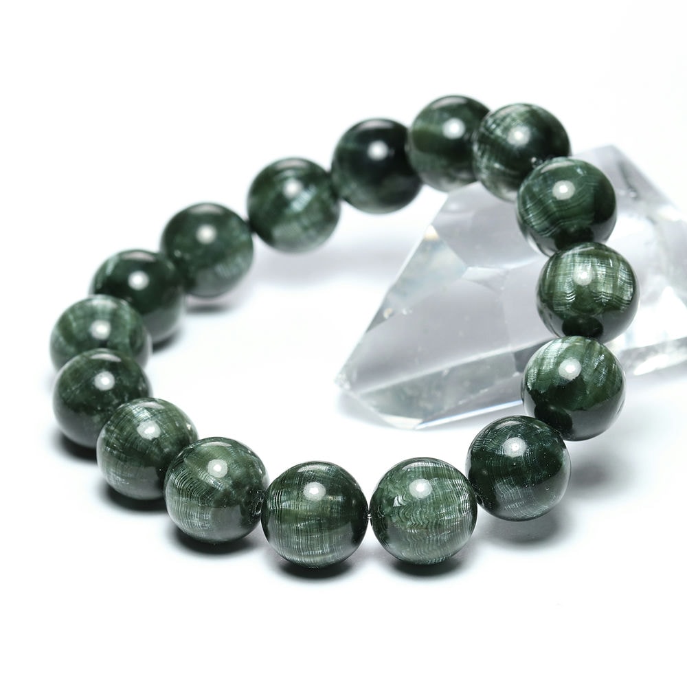 美しいグリーンのセラフィナイトブレスレットをご用意しました。