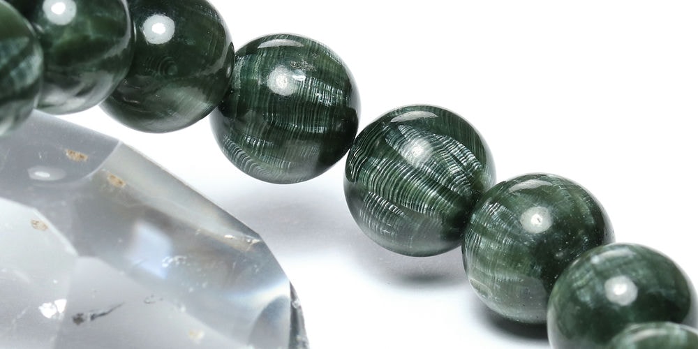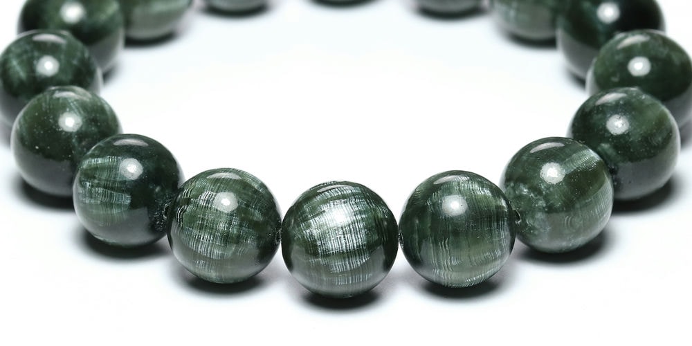 美しいグリーンのセラフィナイトブレスレットをご用意しました。