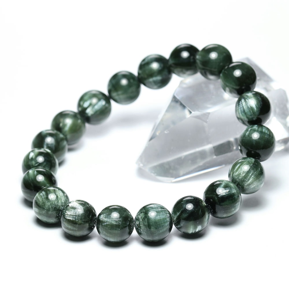 美しいグリーンのセラフィナイトブレスレットをご用意しました。