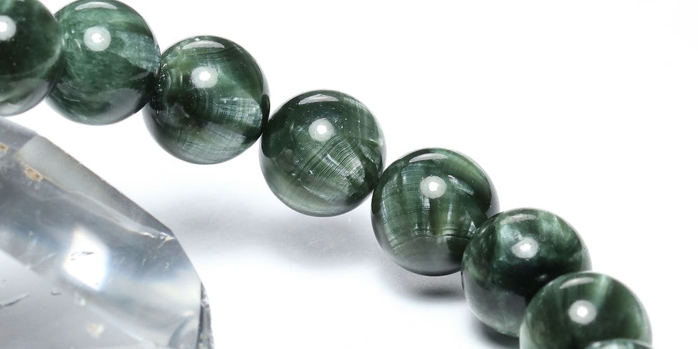 美しいグリーンのセラフィナイトブレスレットをご用意しました。