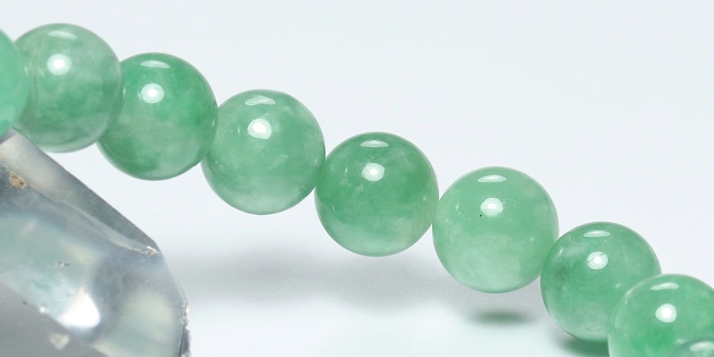 翡翠(ヒスイ)は、非常に高い靱性を持ち衝撃に強いので、着用時は特に注意を払う必要が無いという点でも、普段から肌身離さず身に着けるお守りブレスレットとしても適しているかもしれません。