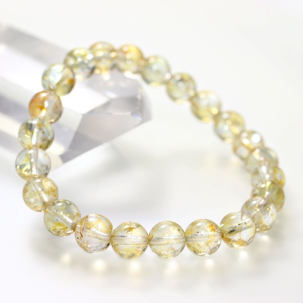 [レア品・高品質++]ライモナイトイントパーズブレスレット/ゴールデントパーズ(約8mm玉)¥18,300クイックガイド送料