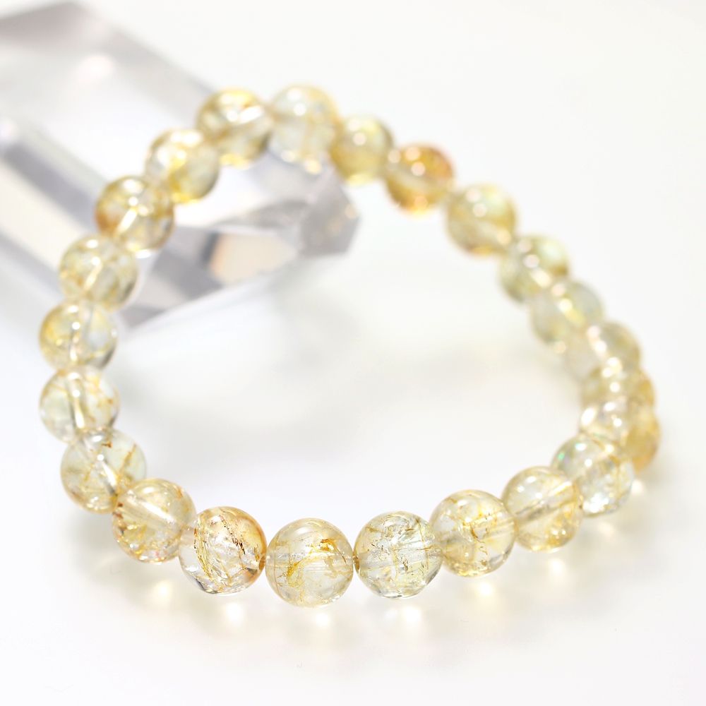[レア品・高品質+]ライモナイトイントパーズブレスレット/ゴールデントパーズ(約8mm玉)
