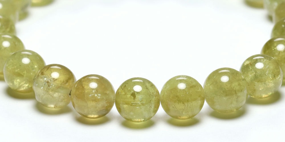 そんな中、ご覧のグリーンガーネットは透明感があり、ライムグリーンカラーが発色良く出ている高品質粒で組み上げたブレスレットに仕上がっております。