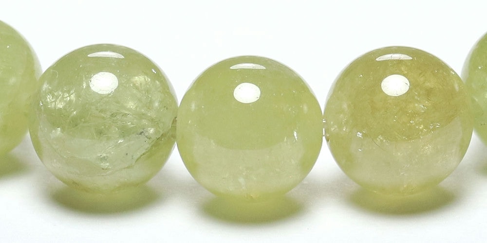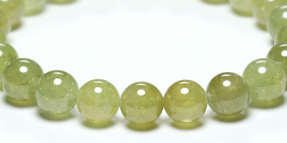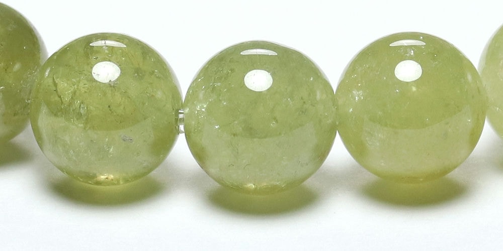 そんな中、ご覧のグリーンガーネットは透明感があり、ライムグリーンカラーが発色良く出ている高品質粒で組み上げたブレスレットに仕上がっております。