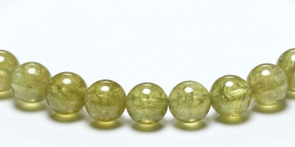 そんな中、ご覧のグリーンガーネットは透明感があり、ライムグリーンカラーが発色良く出ている高品質粒で組み上げたブレスレットに仕上がっております。