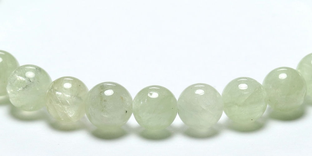 ご覧のグリーンガーネットは、透明感抑えめの、柔らかく明るい軽やかなグリーンカラーの粒で組み上げたブレスレットに仕上がっております。