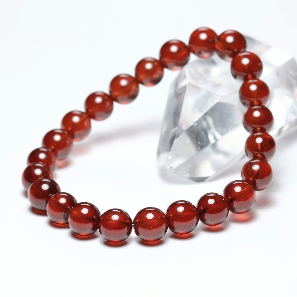[高品質]オレンジガーネットブレスレット/ヘソナイト(約8.5mm玉)¥9,600クイックガイド送料