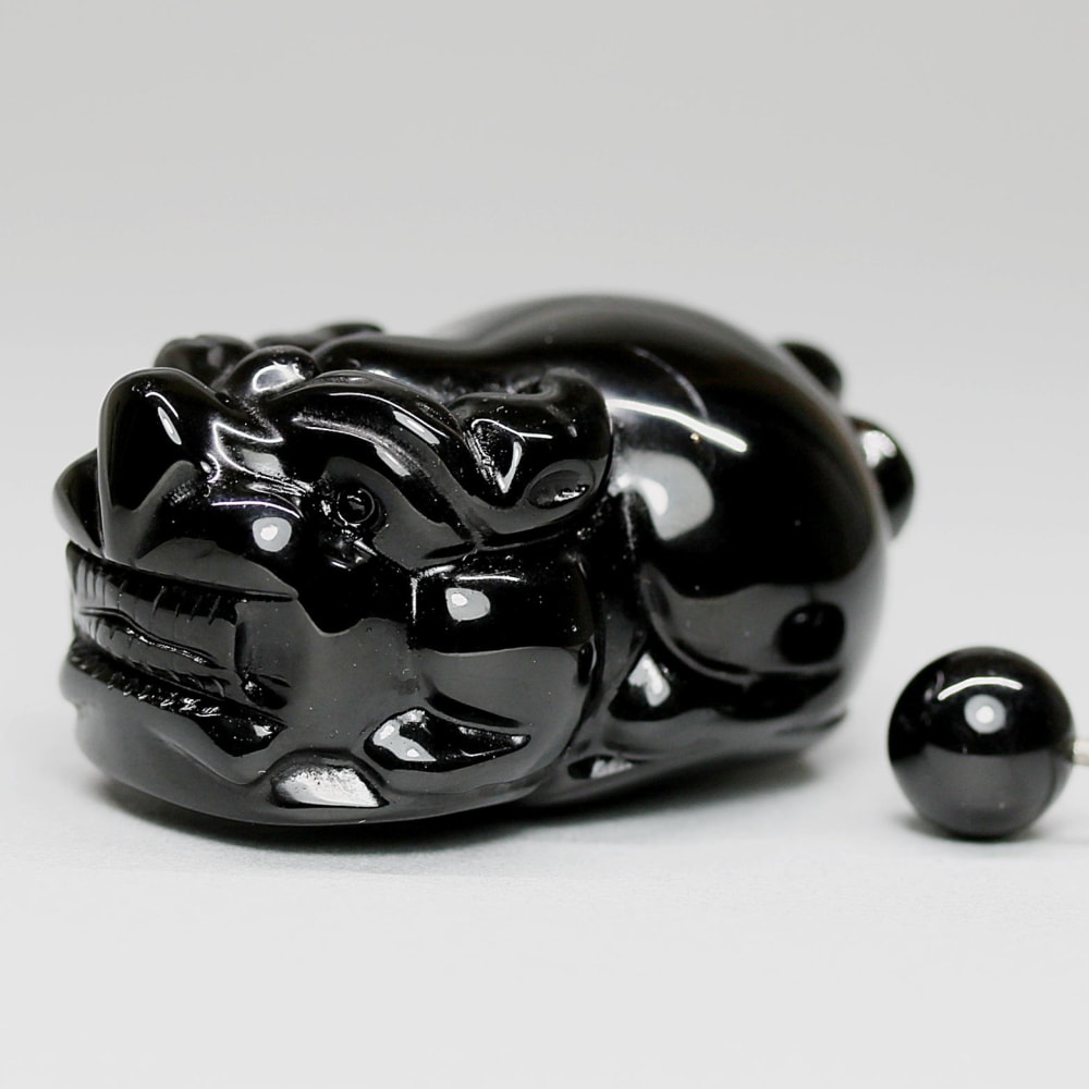 舞い込む金運!漆黒のモリオン「貔貅/ヒキュウ」彫刻