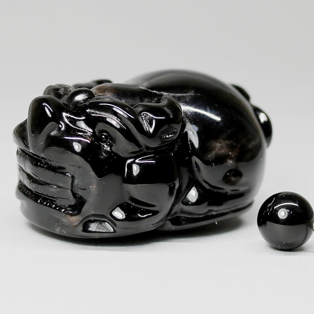 舞い込む金運!漆黒のモリオン「貔貅/ヒキュウ」彫刻