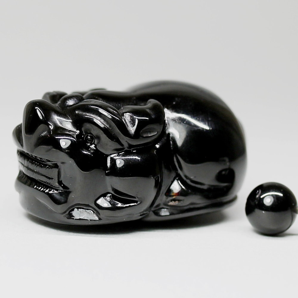 舞い込む金運!漆黒のモリオン「貔貅/ヒキュウ」彫刻
