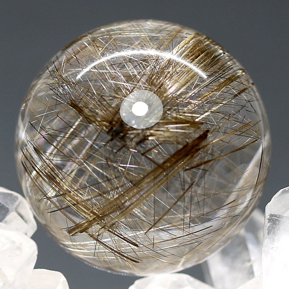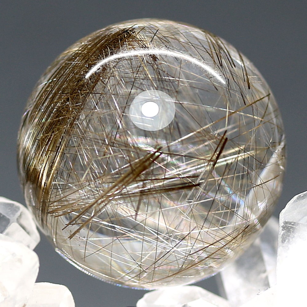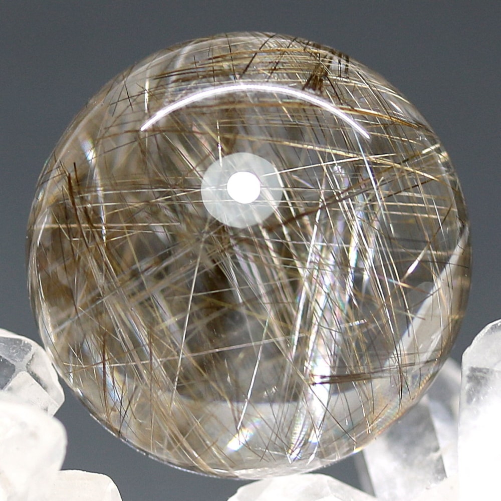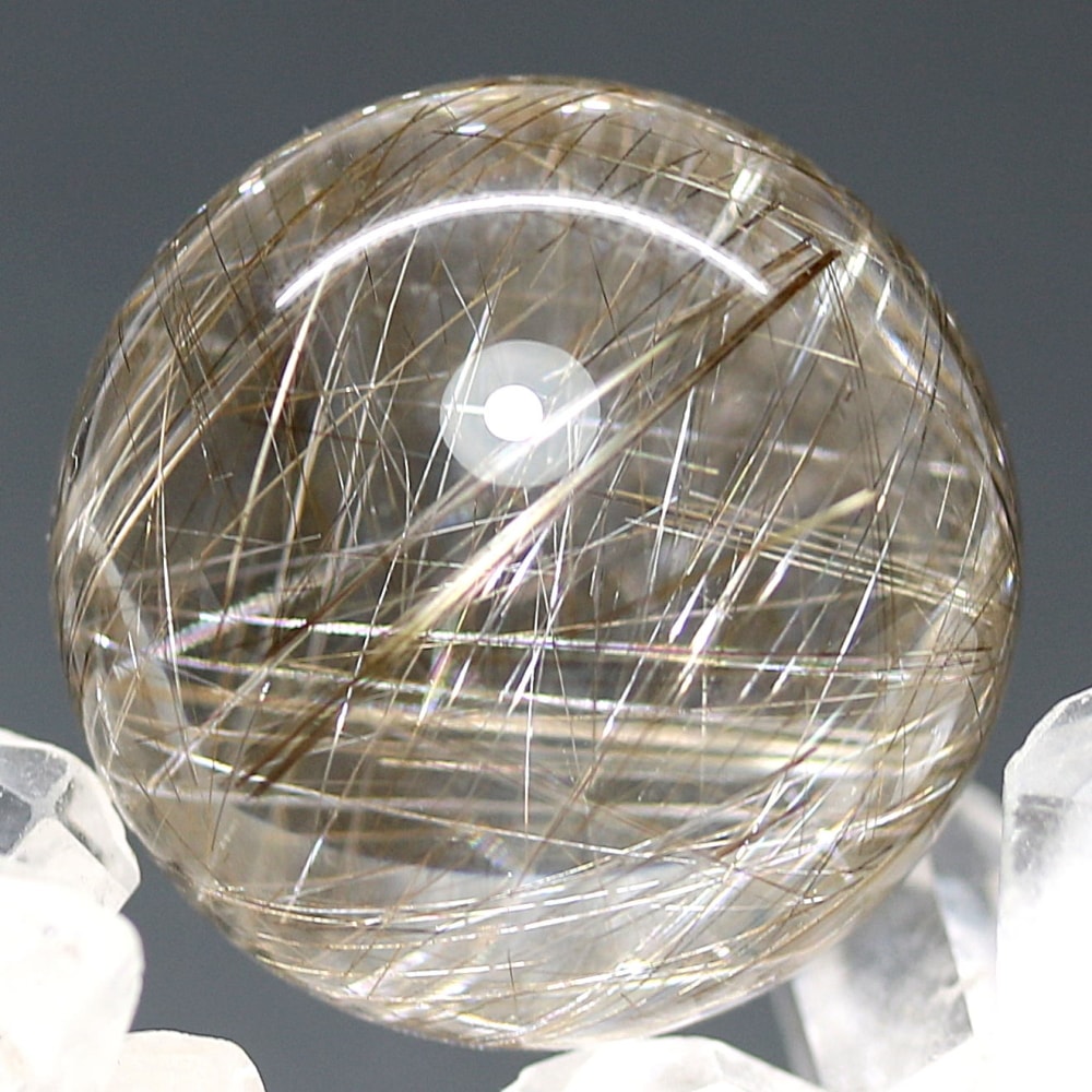 こちらのお品は、“シルバーに近い輝きを見られる” 今ご用意できるトップ品質のシルバールチルクォーツ丸玉となります。