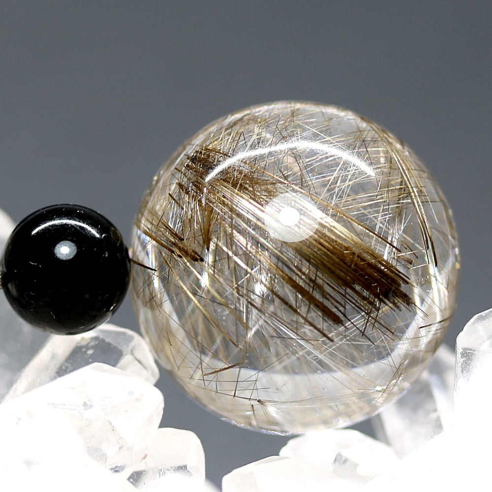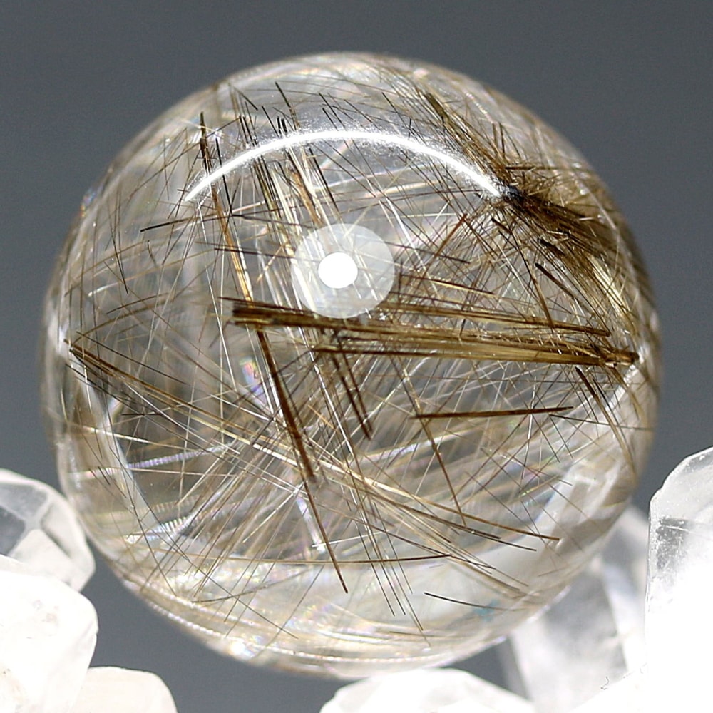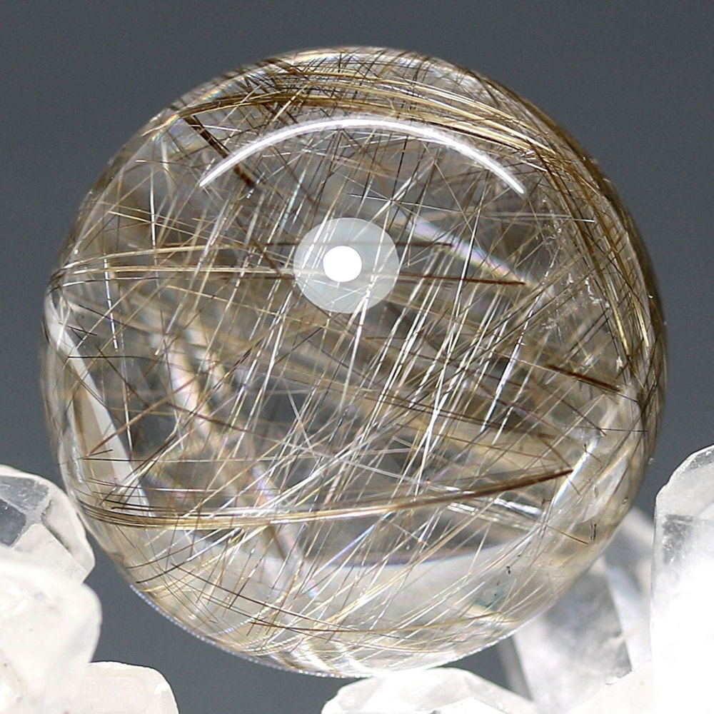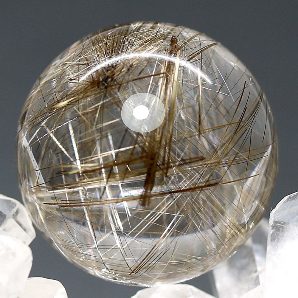こちらのお品は、“シルバーに近い輝きを見られる” 今ご用意できるトップ品質のシルバールチルクォーツ丸玉となります。
